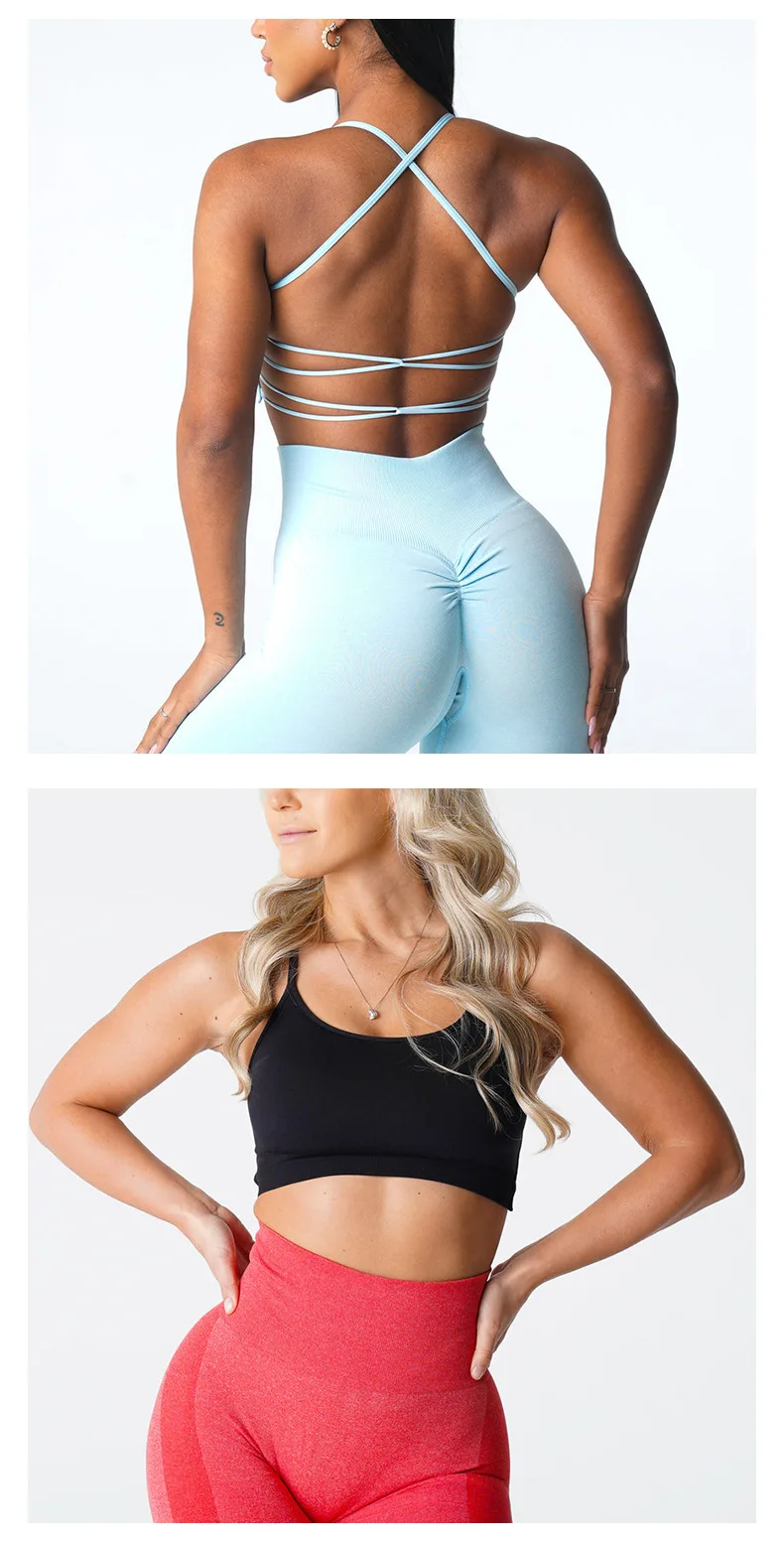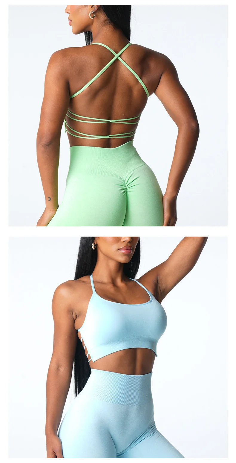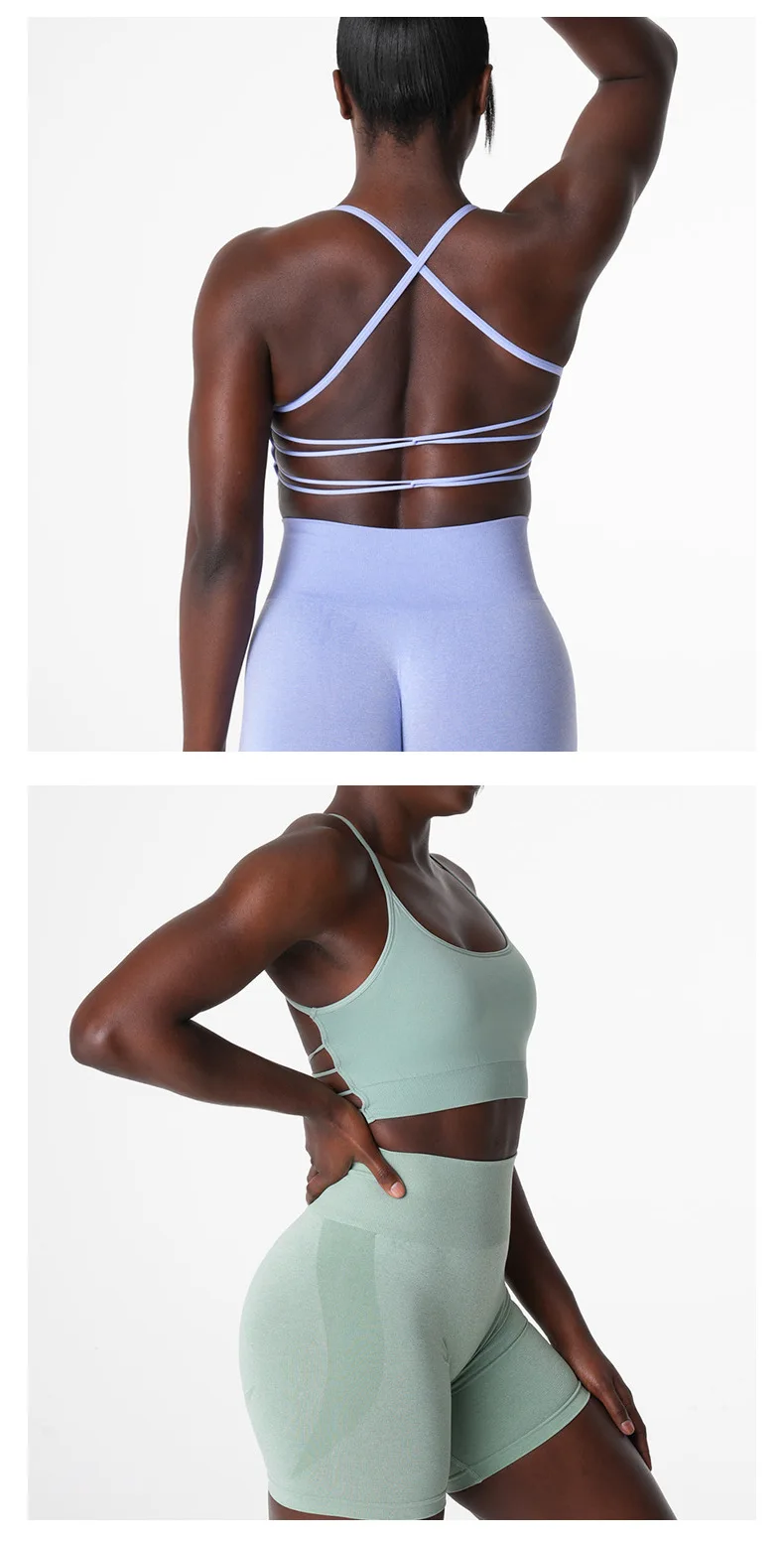 2024 Custom Sexy Yoga Gym High Quality Seamless Cross Back Workout Backless Sports Bra For Women Fitness