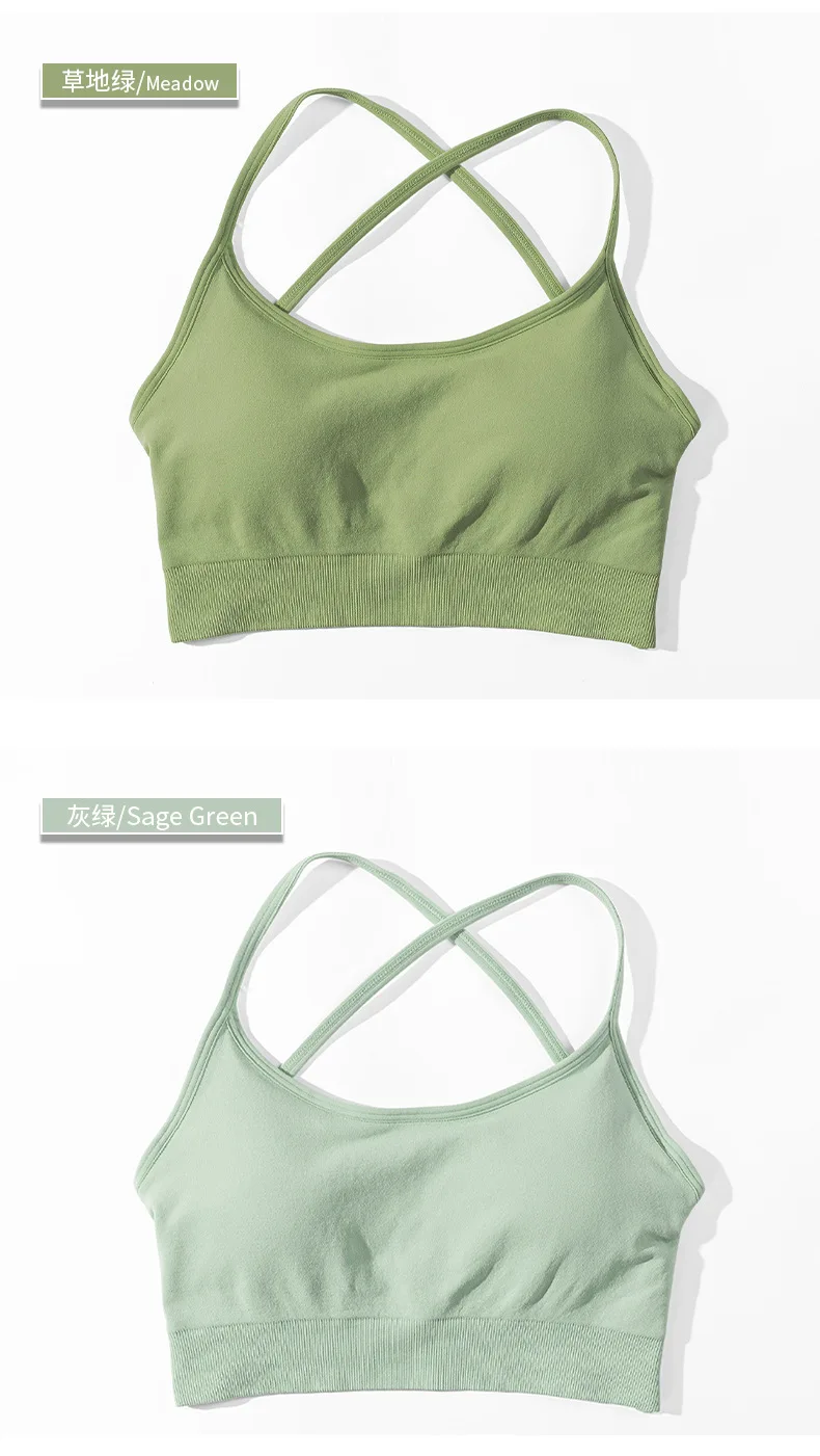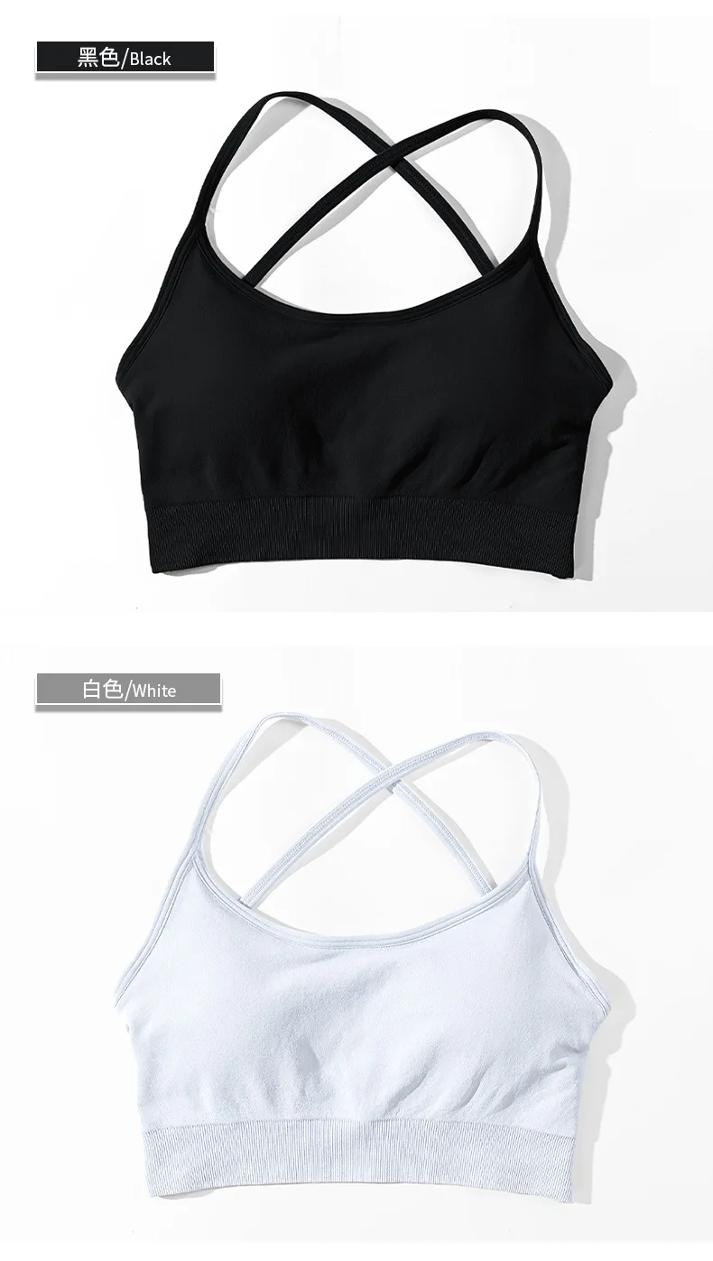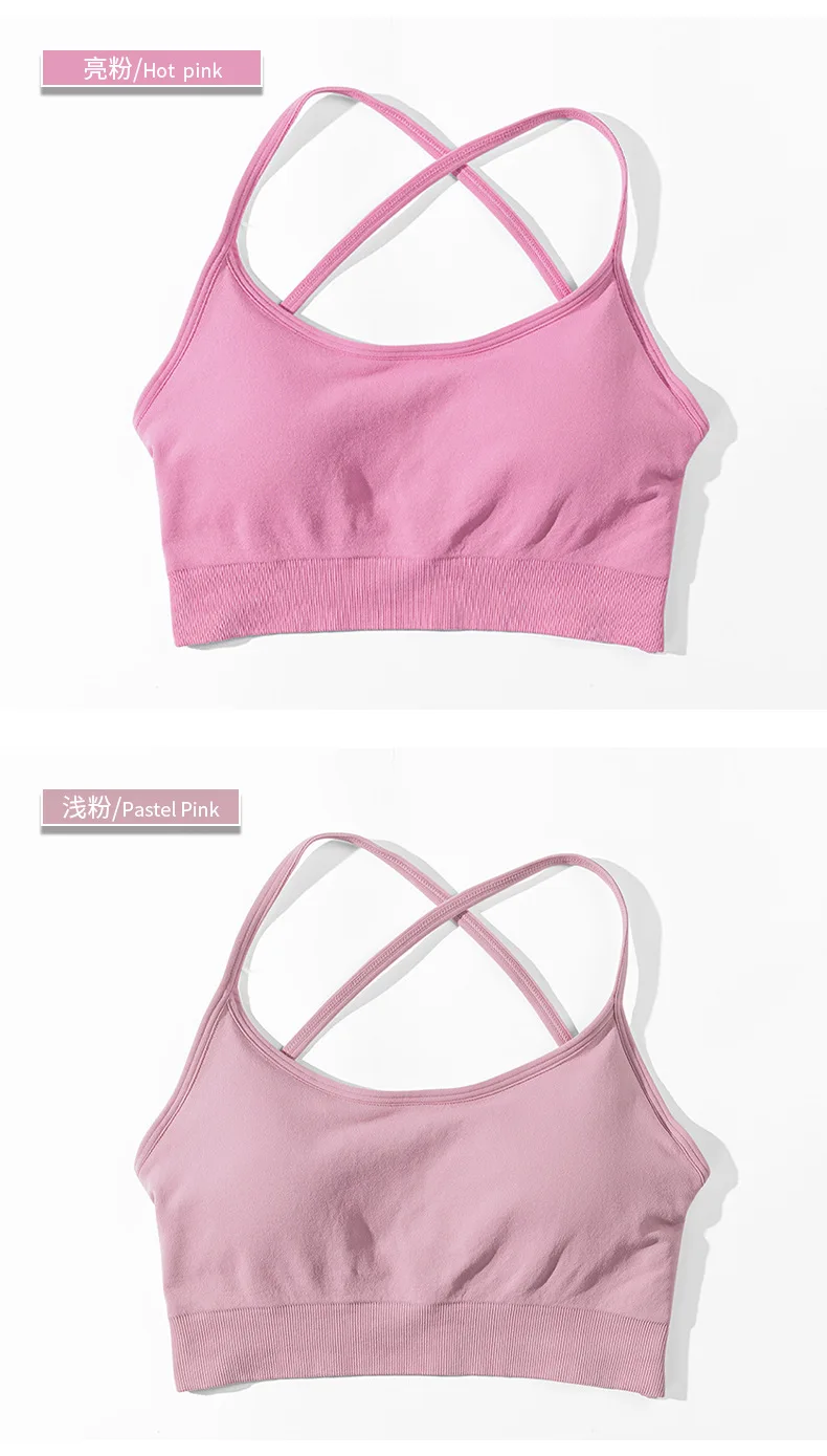 2024 Custom Sexy Yoga Gym High Quality Seamless Cross Back Workout Backless Sports Bra For Women Fitness