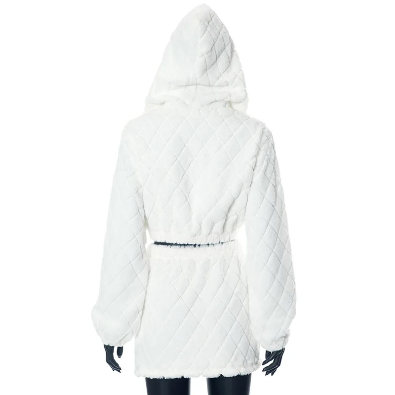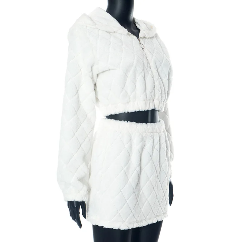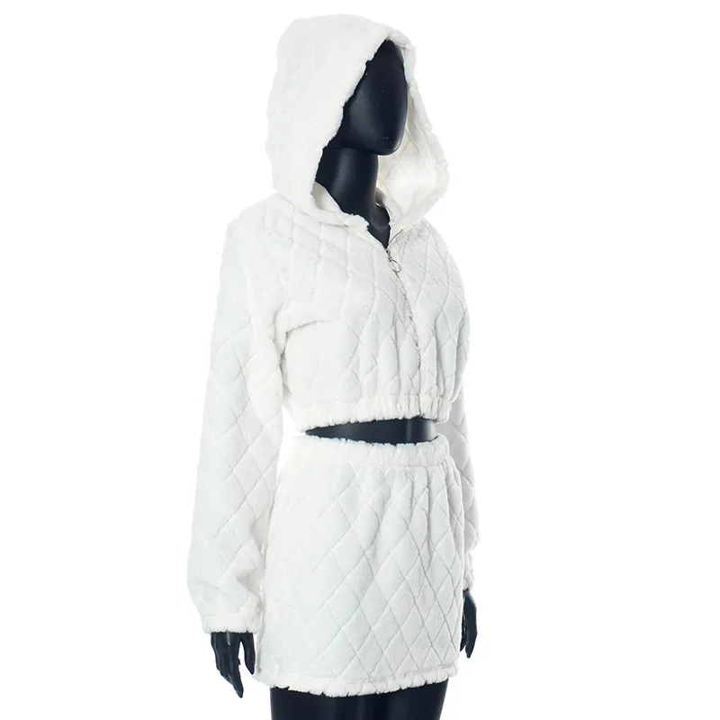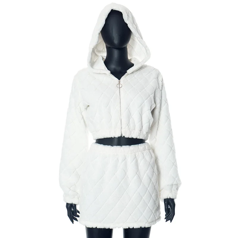 2024 Fall And Winter Hoodie Two Piece Set Long Sleeve Wool Fashionable Women Nightclub Skirt Sets