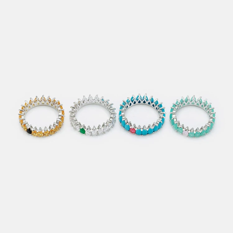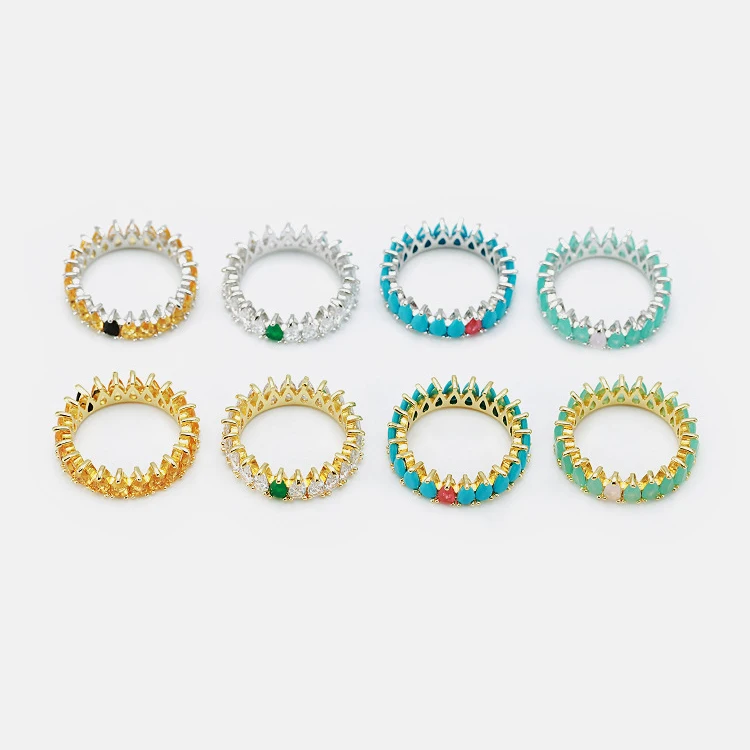 2024 fashion color zircon ring multi-element 18k gold-plated brass ring gift for girl