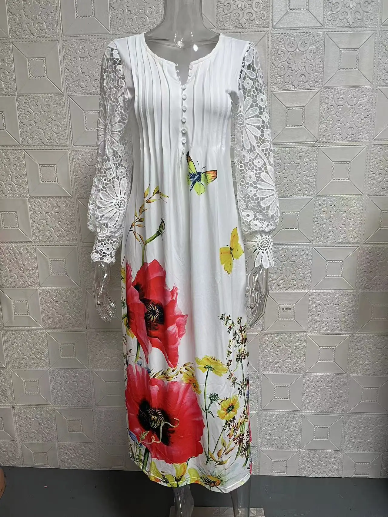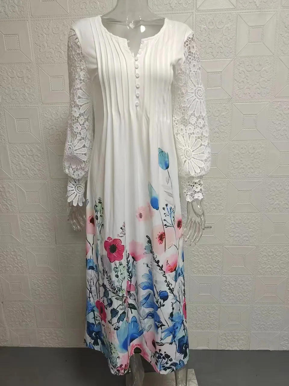 2024 Fashion New Hot Sale Autumn and Winter Women's New Dress Fashionable Printed Lace Long Sleeve Dress