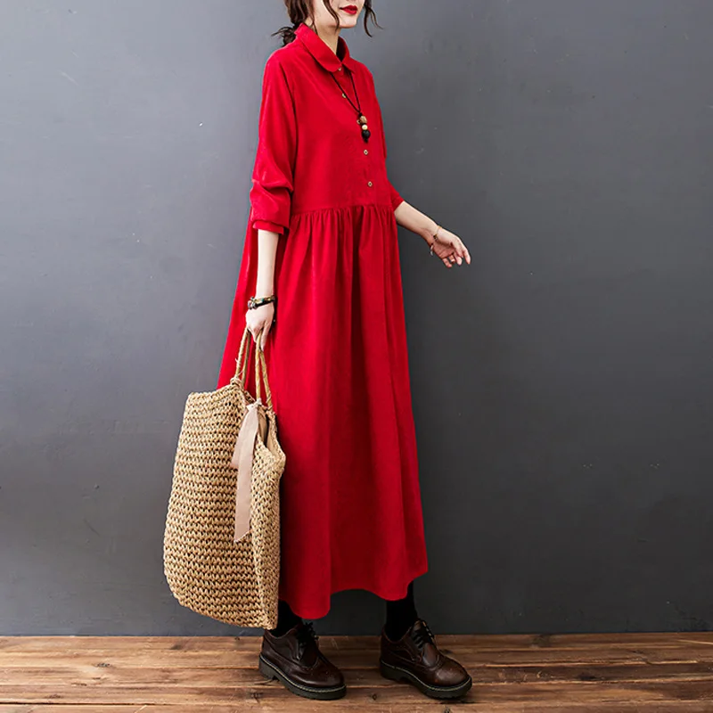 2024 Fashion New Spring and Autumn New Style Women's Plus Size Casual Warm Corduroy Lapel Long Dress for Women
