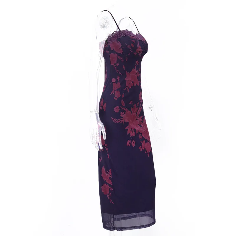 2024 Fashion sexy lace strap evening dress long slim fit slip dress women high waisted long slit skirt party dress