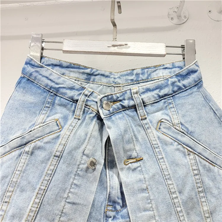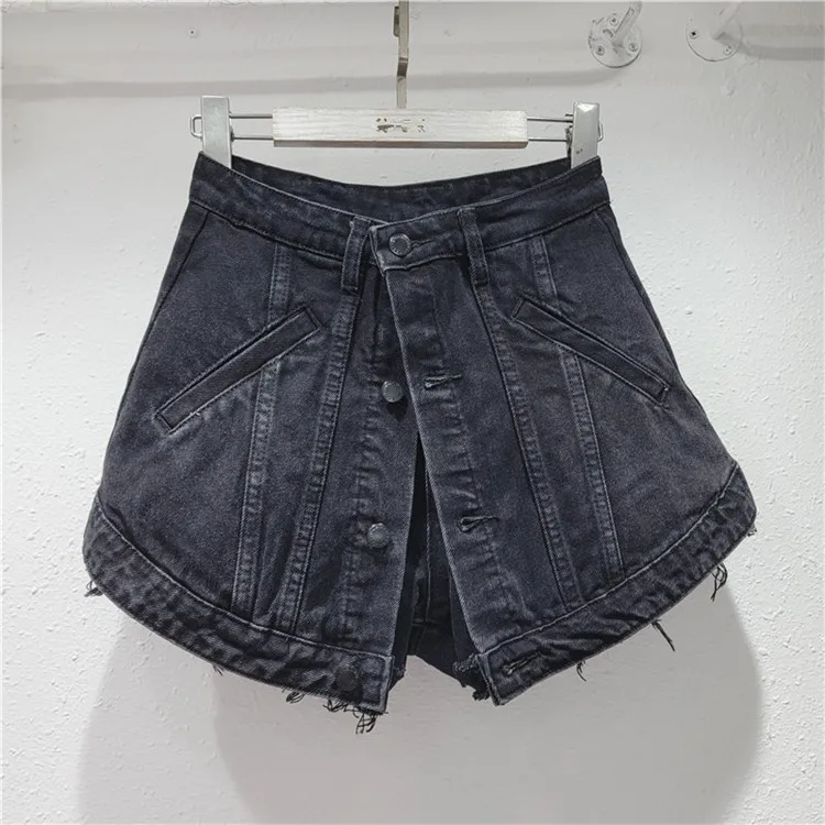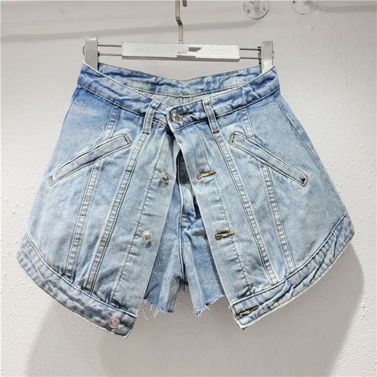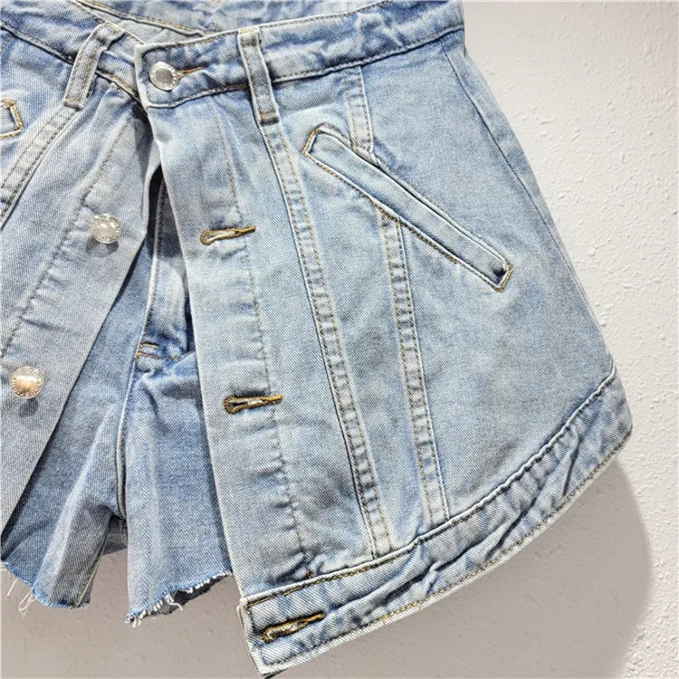 2024 Fashion Trends Streetwear Denim Shorts Women Patchwork Button Fake Two Pieces Denim Mini Skirt Shorts