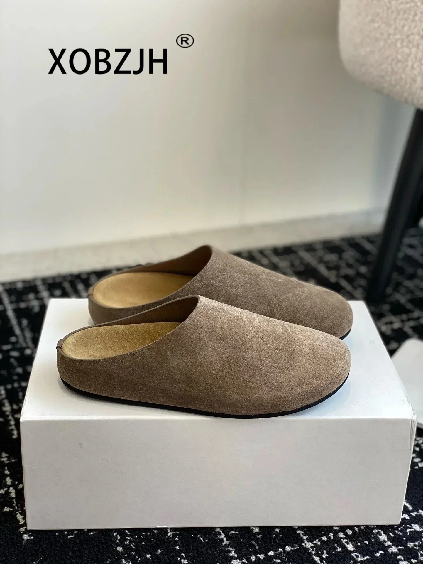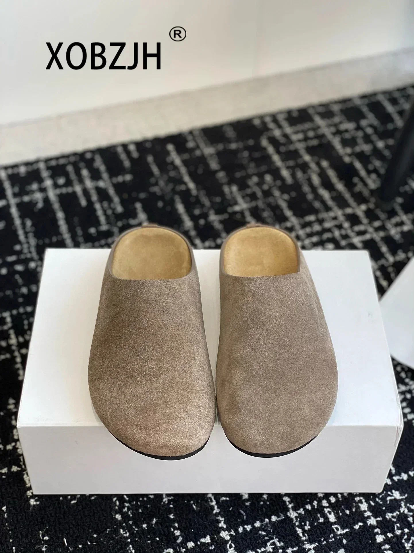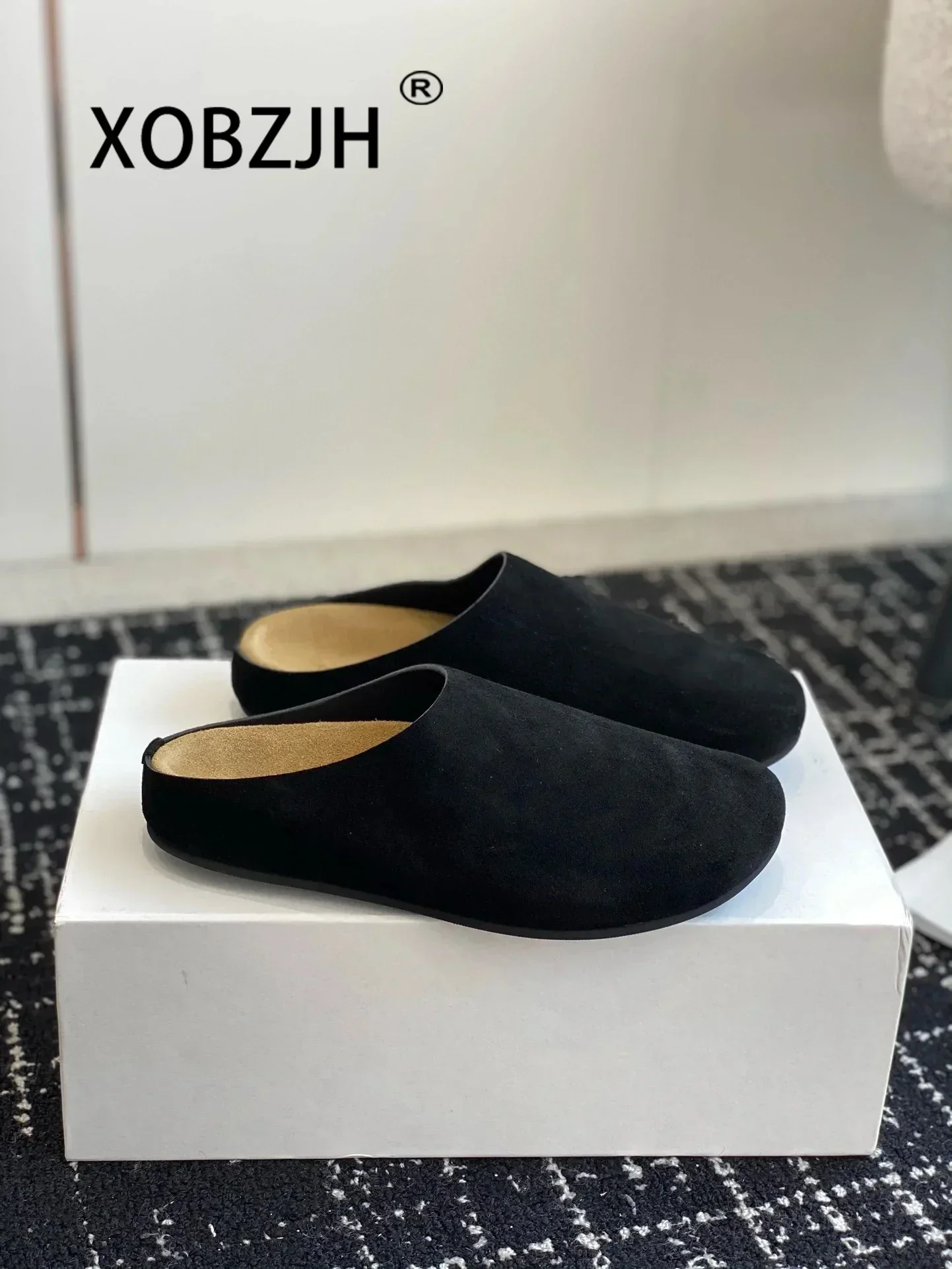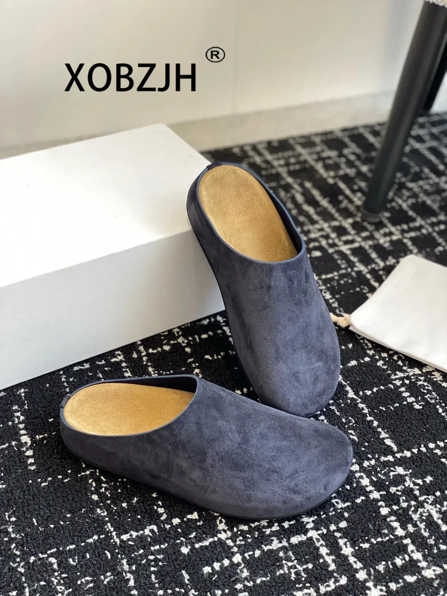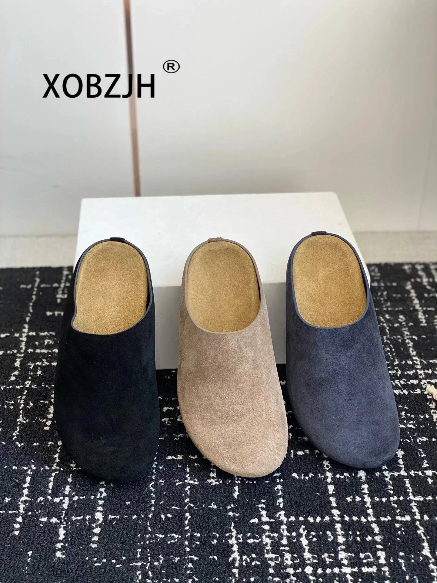2024 Flat Slippers High Quality New Women KidSuede Mules Shoes Round Toe Casual ComfortSlides Woman Thick Sole Slippers Woman