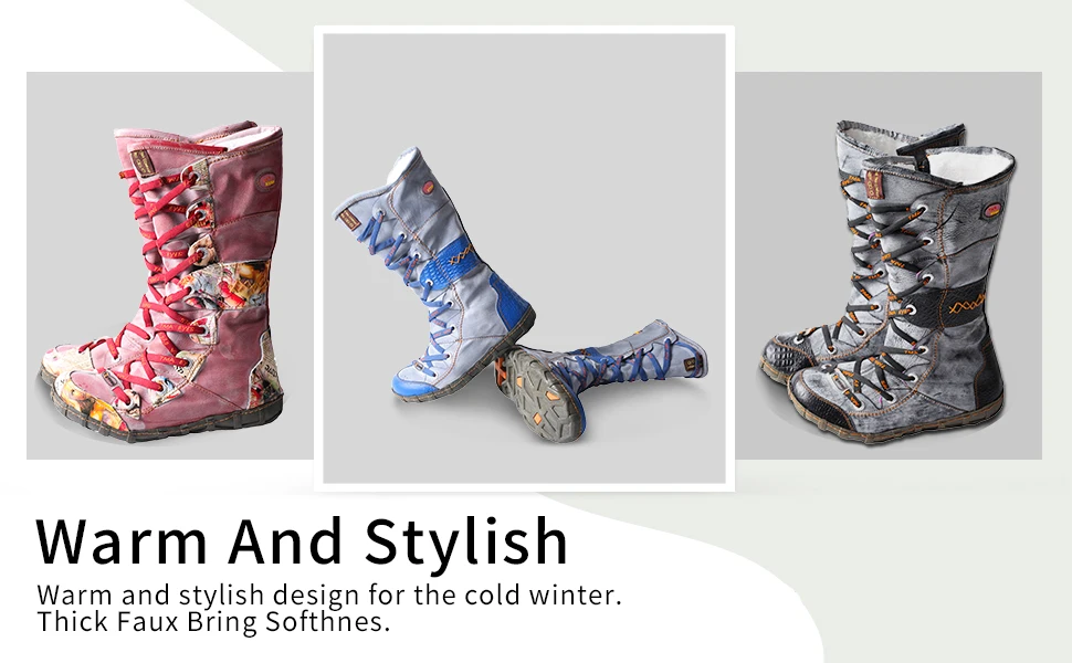 Latest Fashionable Women's Winter Lace-Up Mid Calf Boots Breathable Hard-Wearing with Faux Insoles Western Style