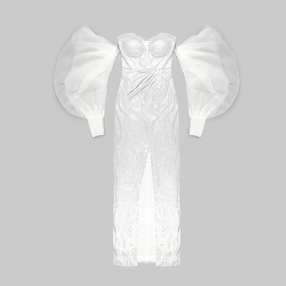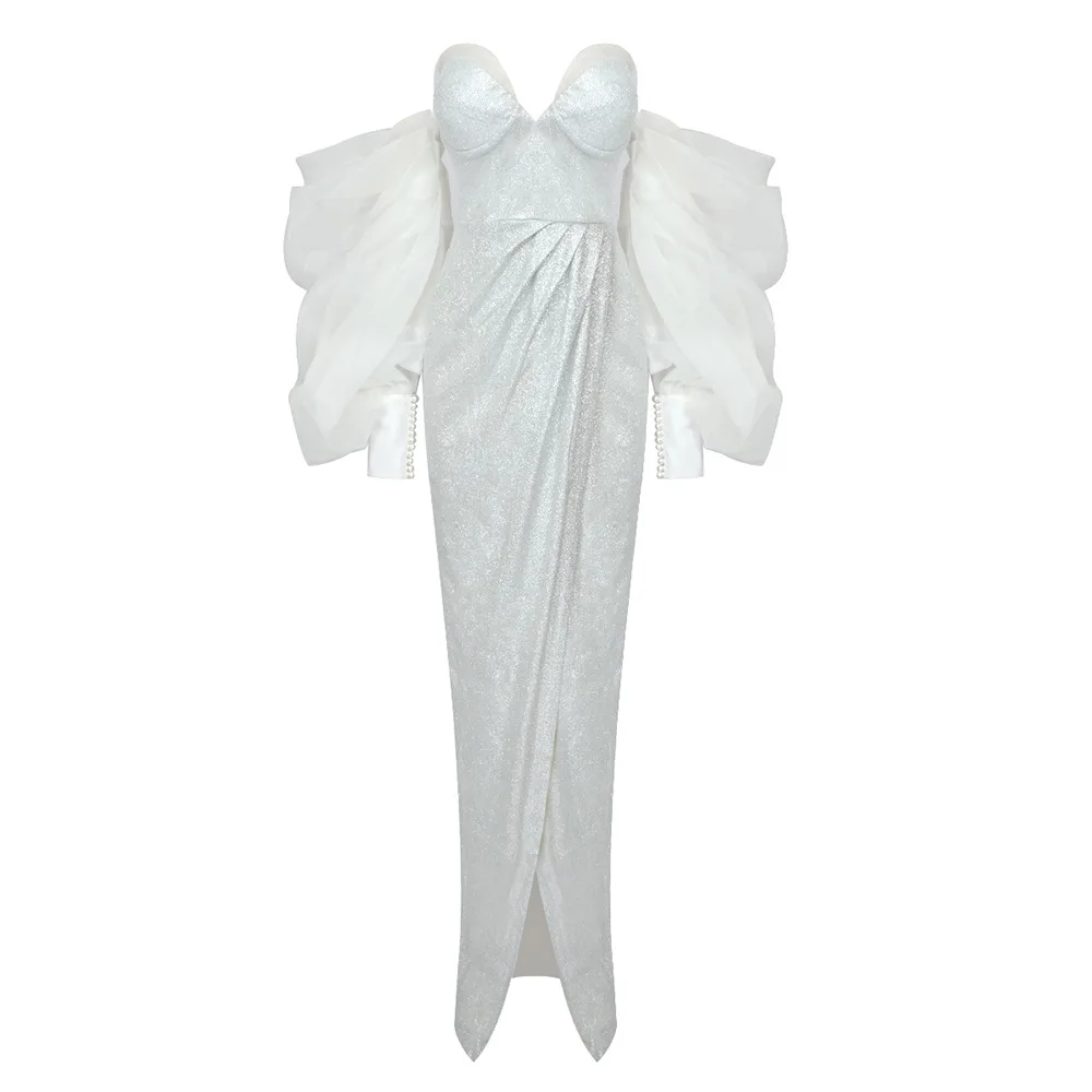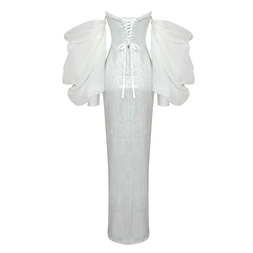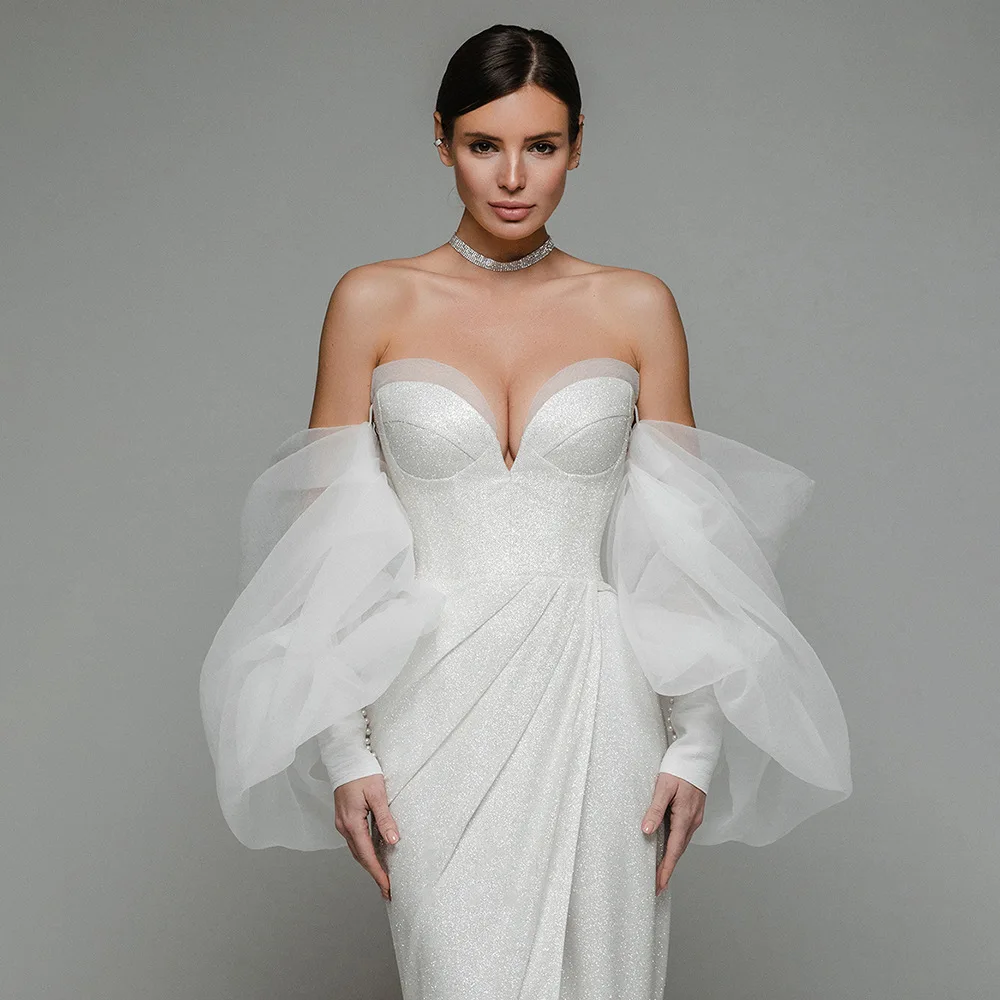 2024 Latest Long Sequin Made Prom Evening Dress Woman Dresses With Detachable Puffy Sleeves