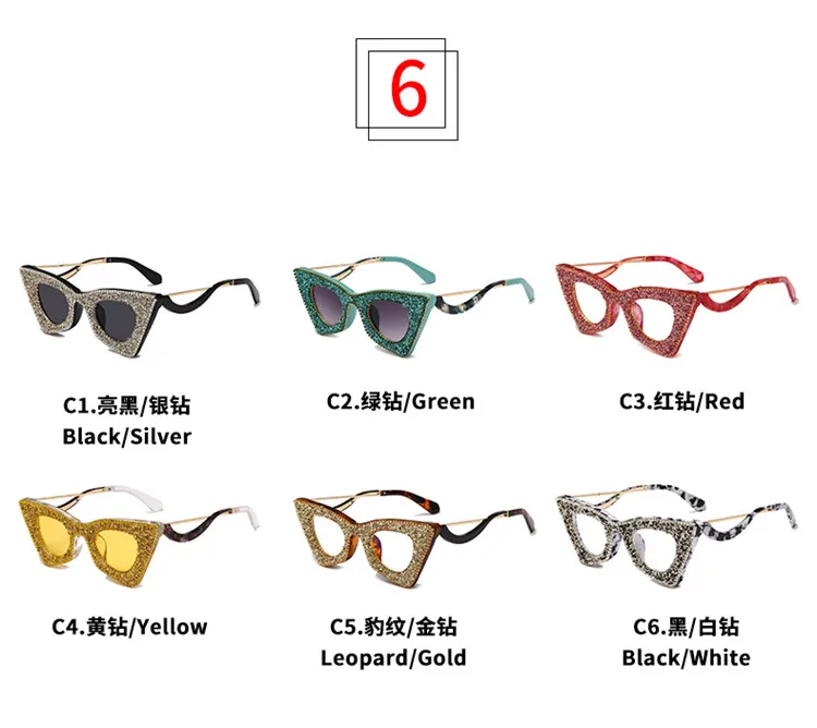 2024 Luxury Fashion Vintage Rhinestone Shades Brand luxury Big Cat Eye ladies diamond glasses rhinestone shades Eyewear