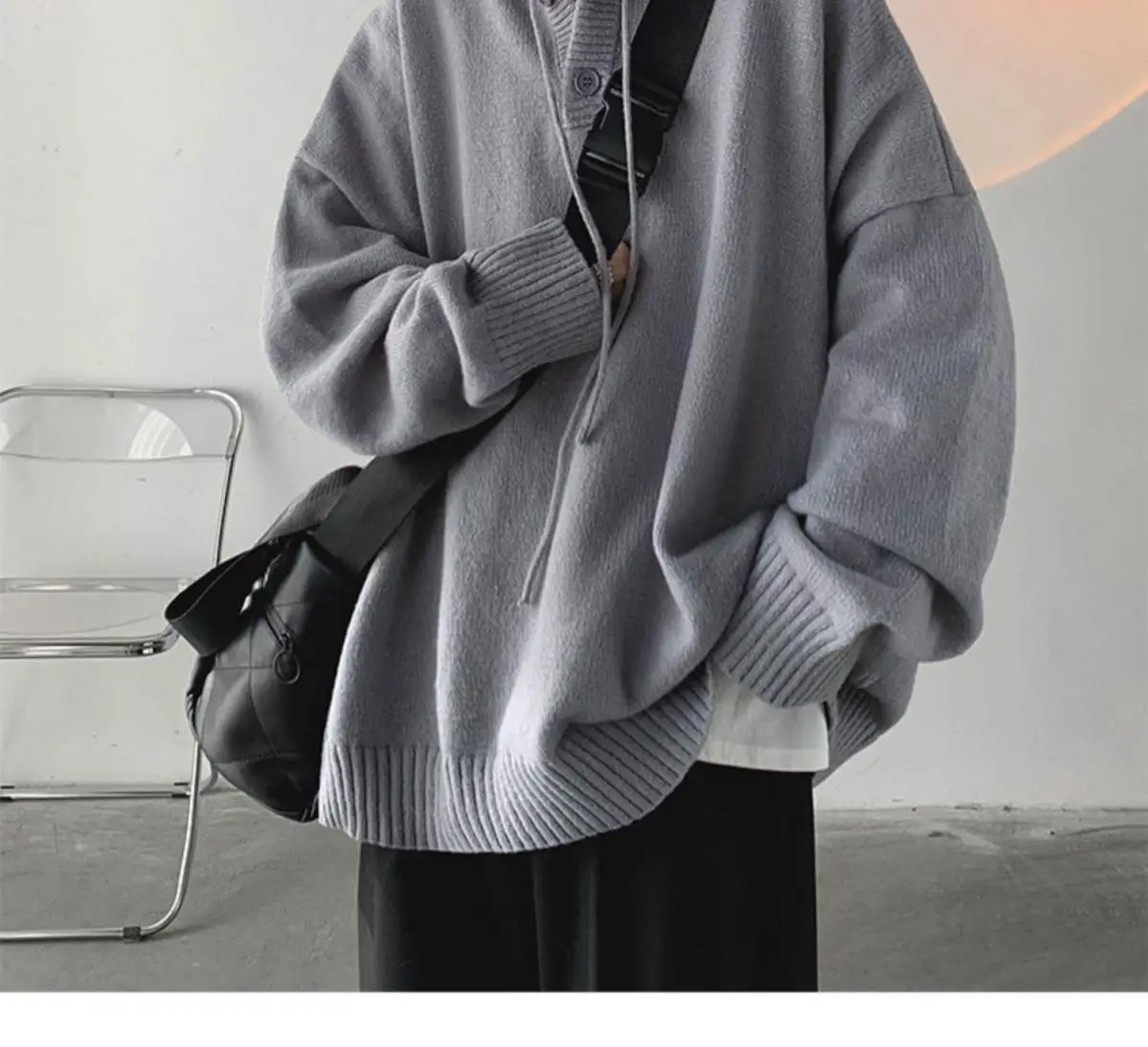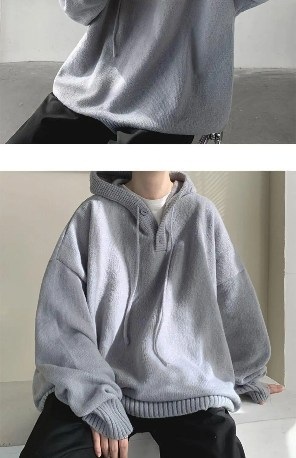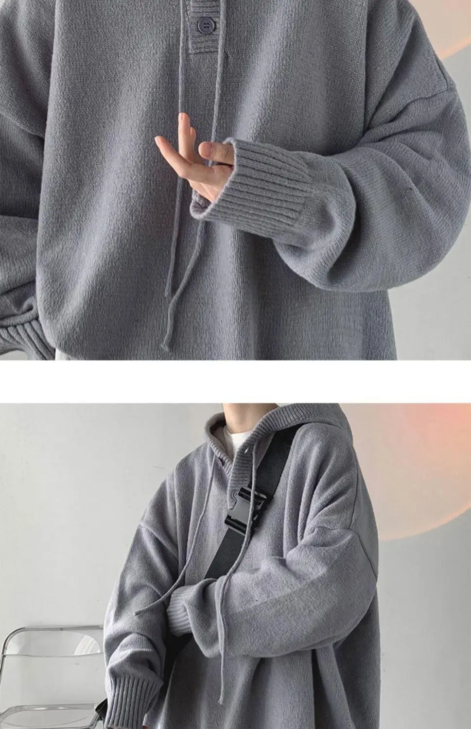 2024 Men Sweater Hooded High Neck Sweater Men's Autumn Loose Sweater Japanese Retro Student Outerwear Knit Coat