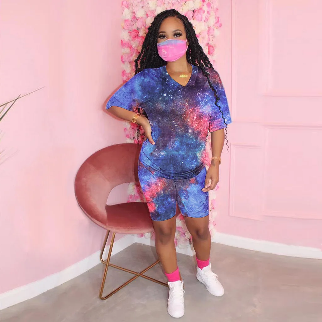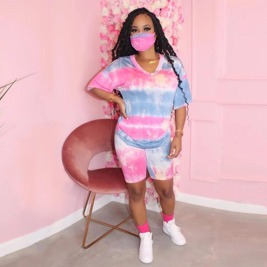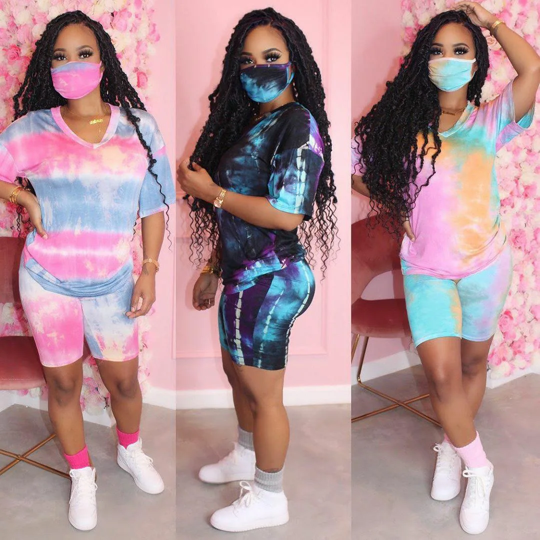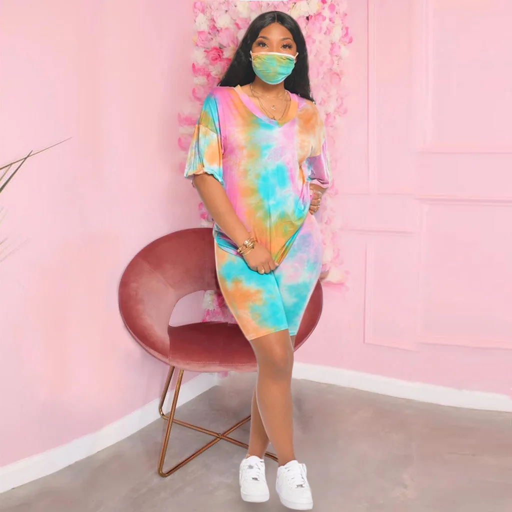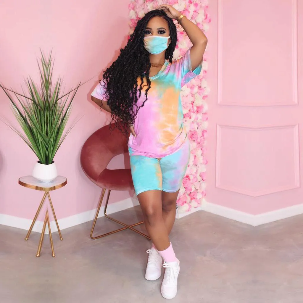 2024 New Arrival 2 Piece Set Women Summer Tie Dye Loose T-shirt Shorts Set 2 Piece Outfits for Women