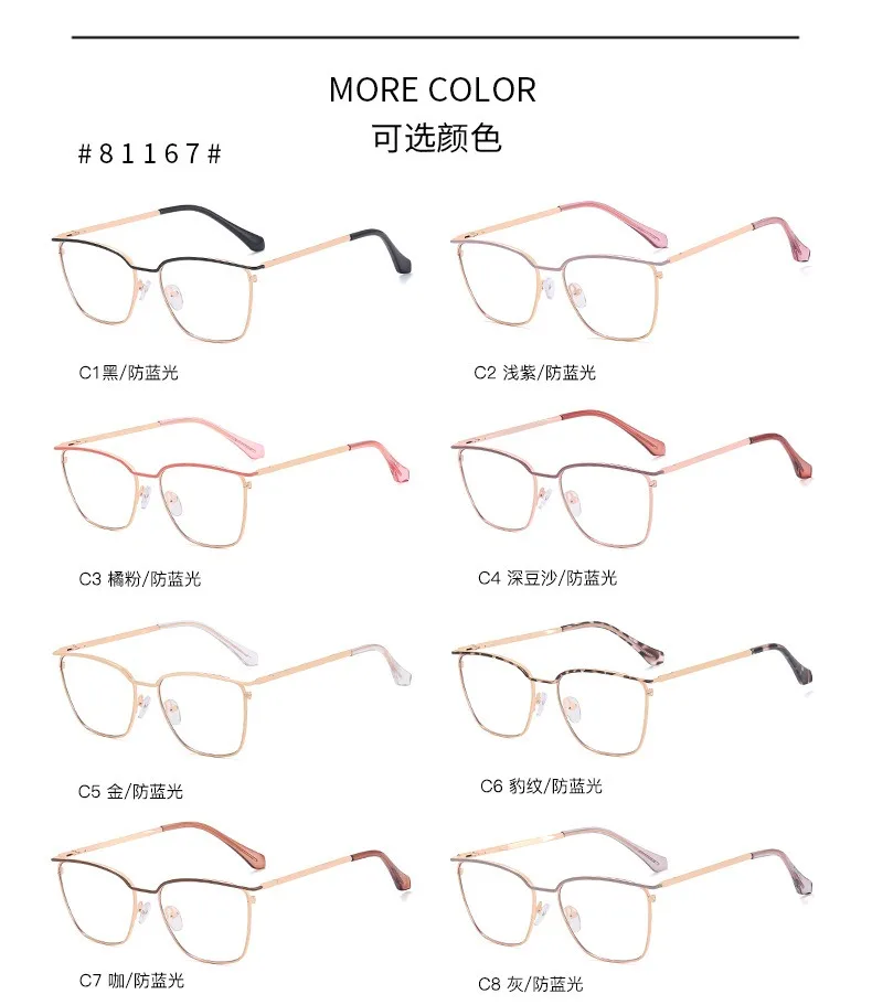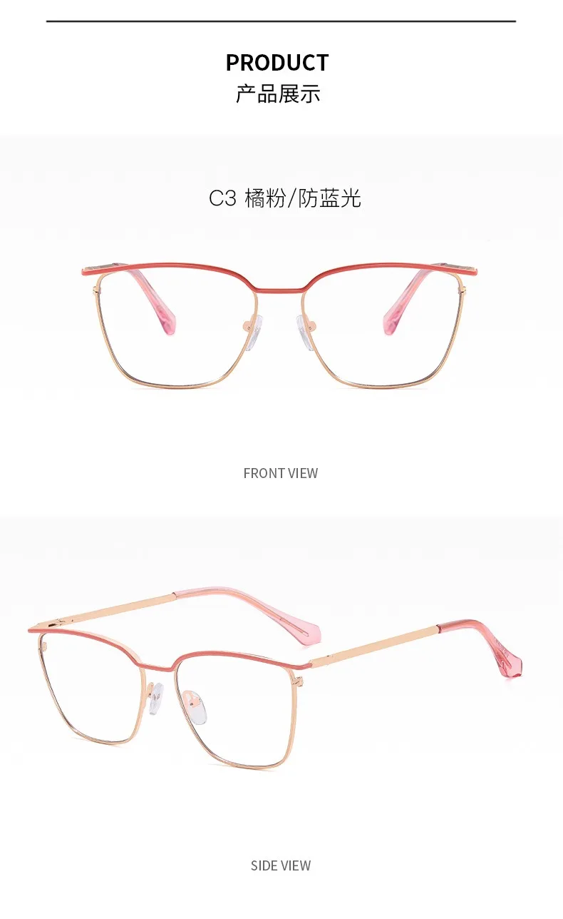2024 New Arrival Best Quality Women glasses Metal Rectangle Glasses Square Anti Blue Light Eye glasses Frame For Myopia Lens
