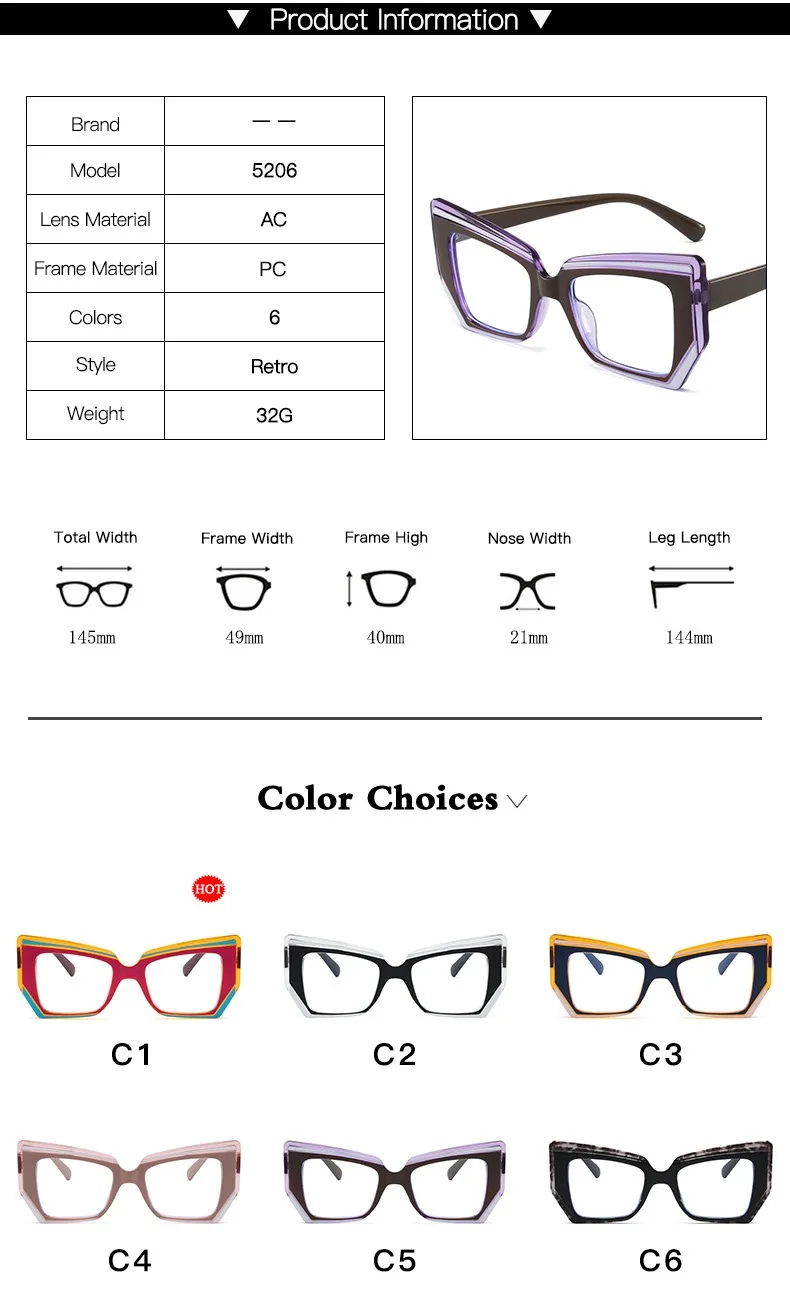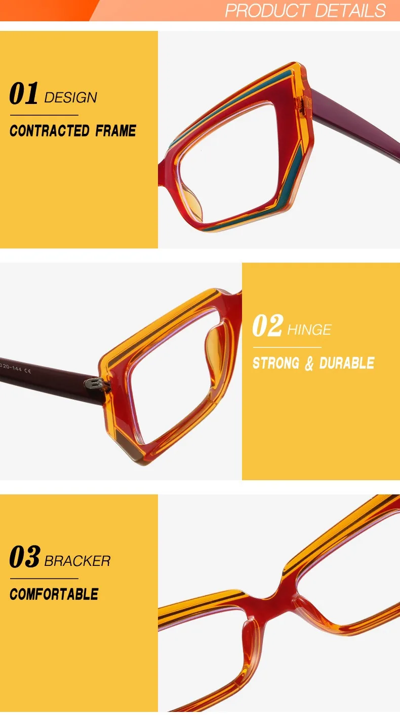 Square Blue Light Blocking Eyewear Spectacle Frame Cat Eye Lens