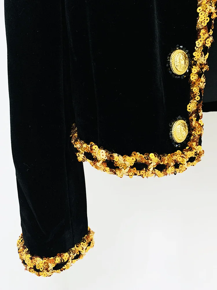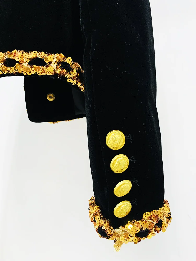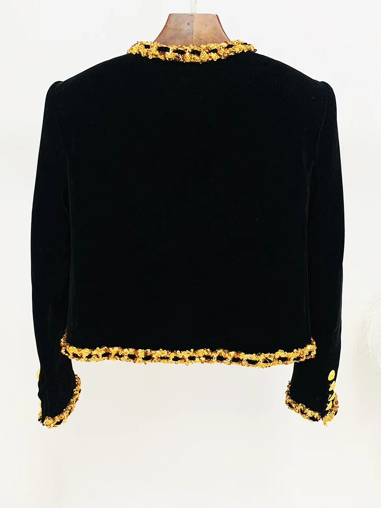 2024 New Arrival Lady Fine Workmanship Sequins Coat O-neckline Long Sleeve Women Double-breasted Slim Short Jacket