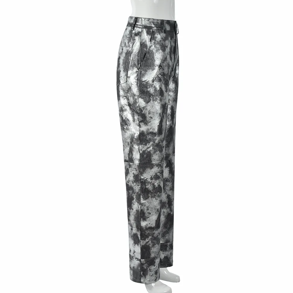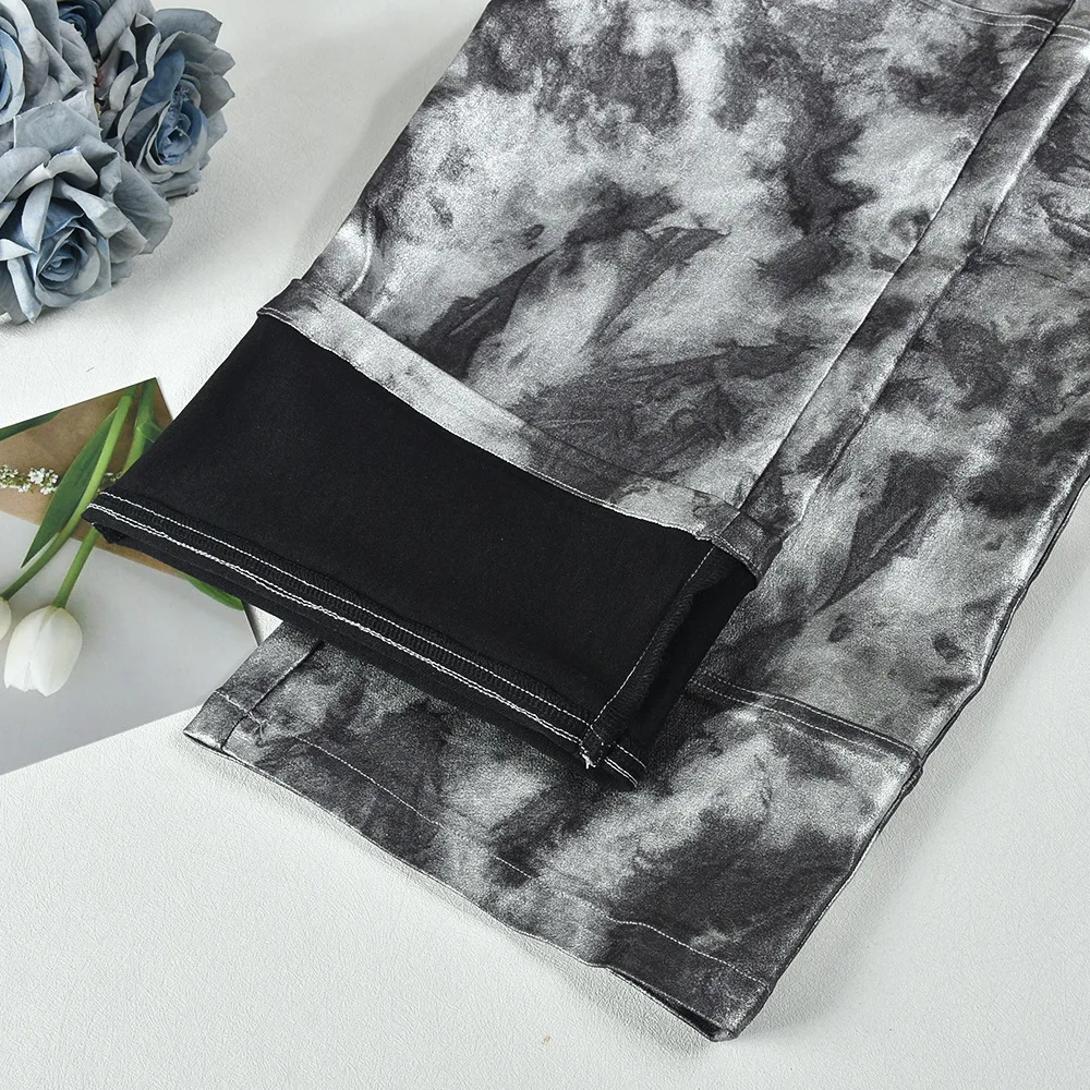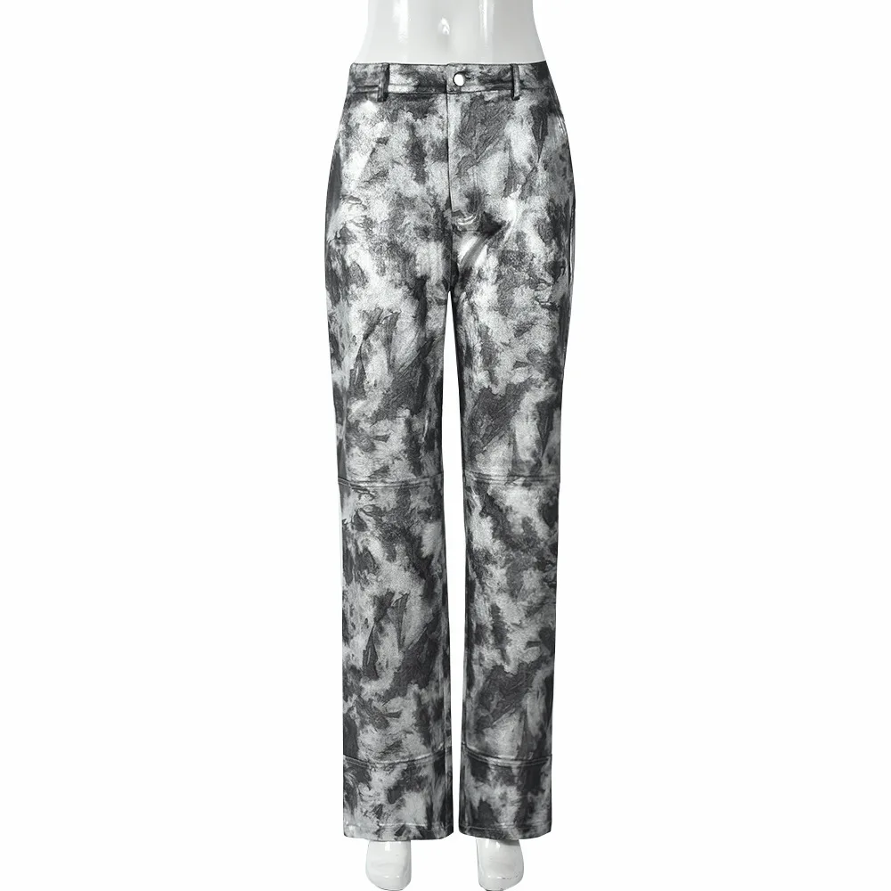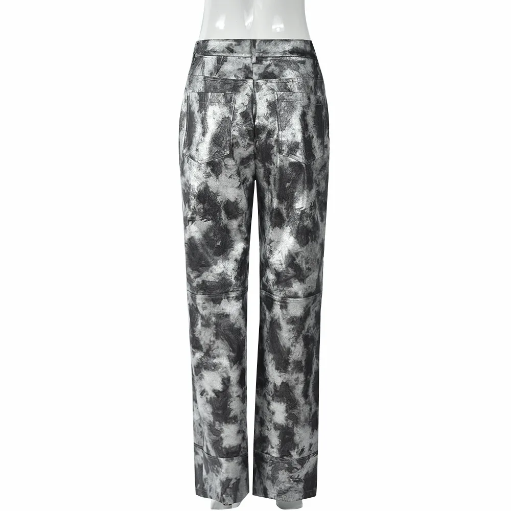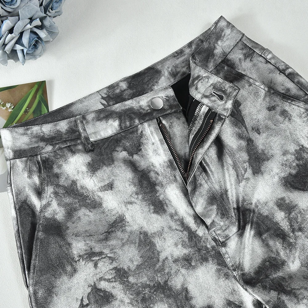 2024 New Arrivals Fashion Print Casual Trousers High Waist Straight Pants Stretch Pu Skinny Pants For Women