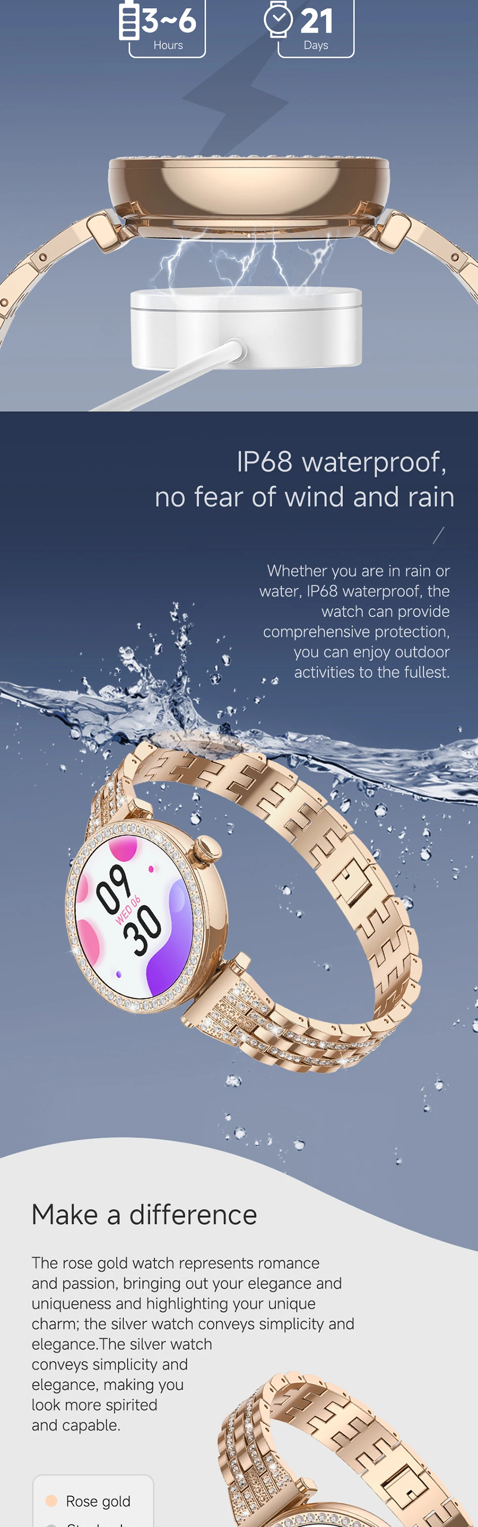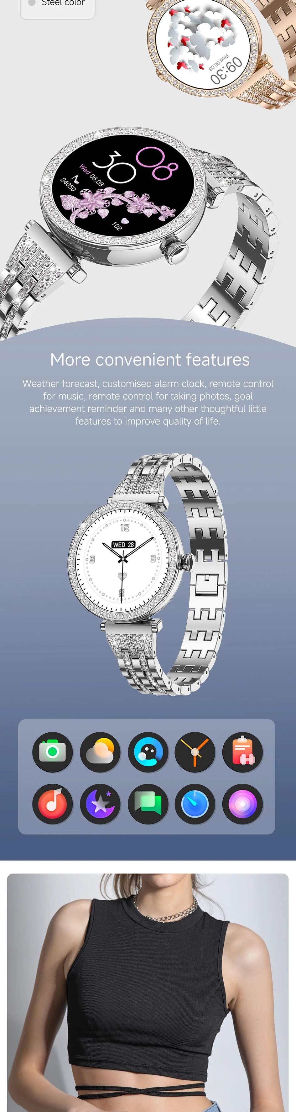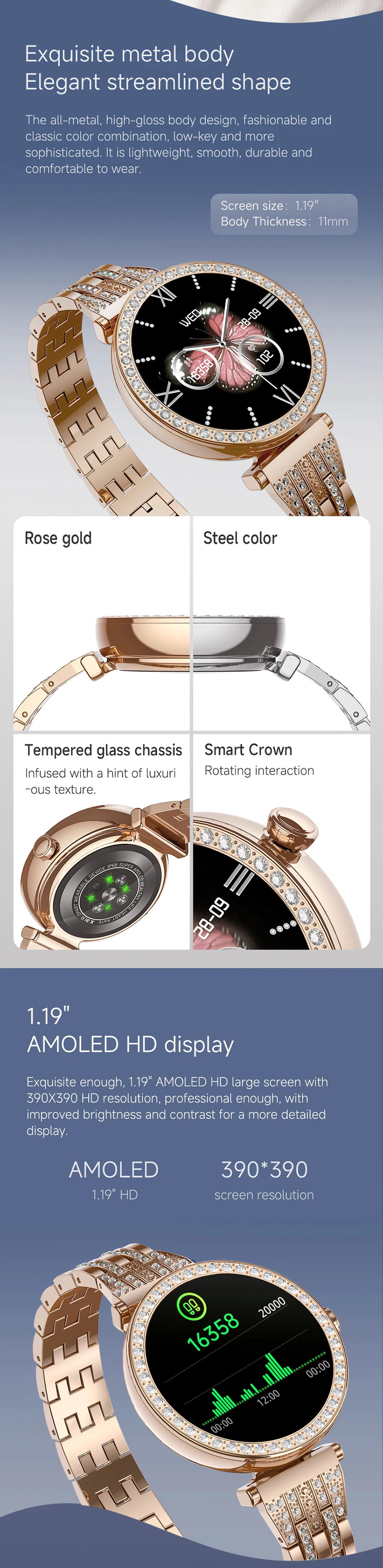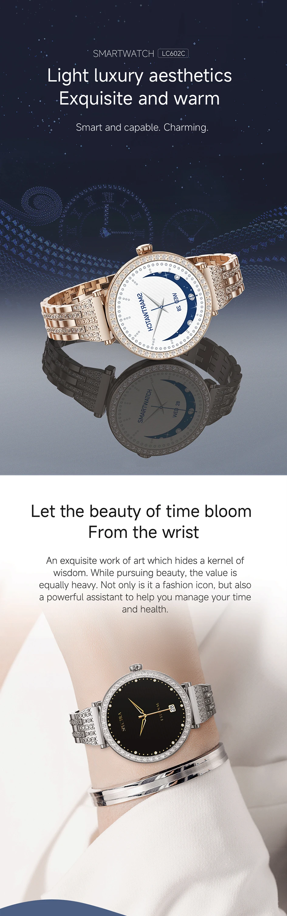 2024 New design LC602C Luxury Lady AMOLED screen Smart watch 2023 Fashion BT Call IP68 Diamond Steel smart watch for women