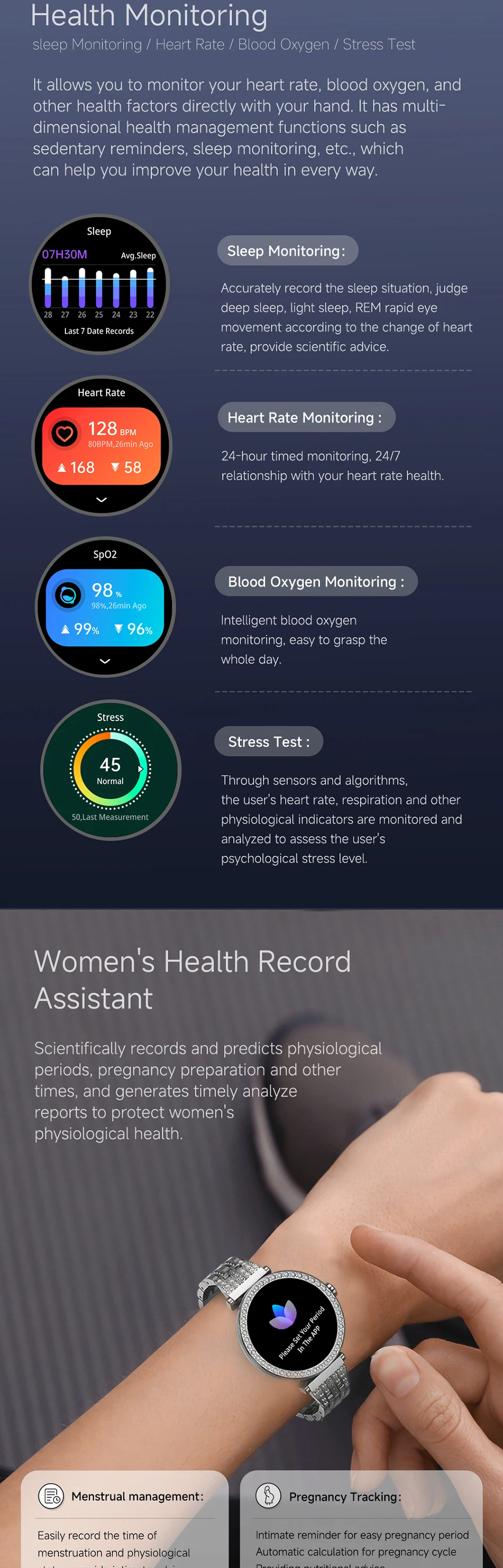 fitness, dancing, baseball, elliptical machine, indoor cycling, free training, rowing machine and other more than 100 sports modes can be added by themselves |