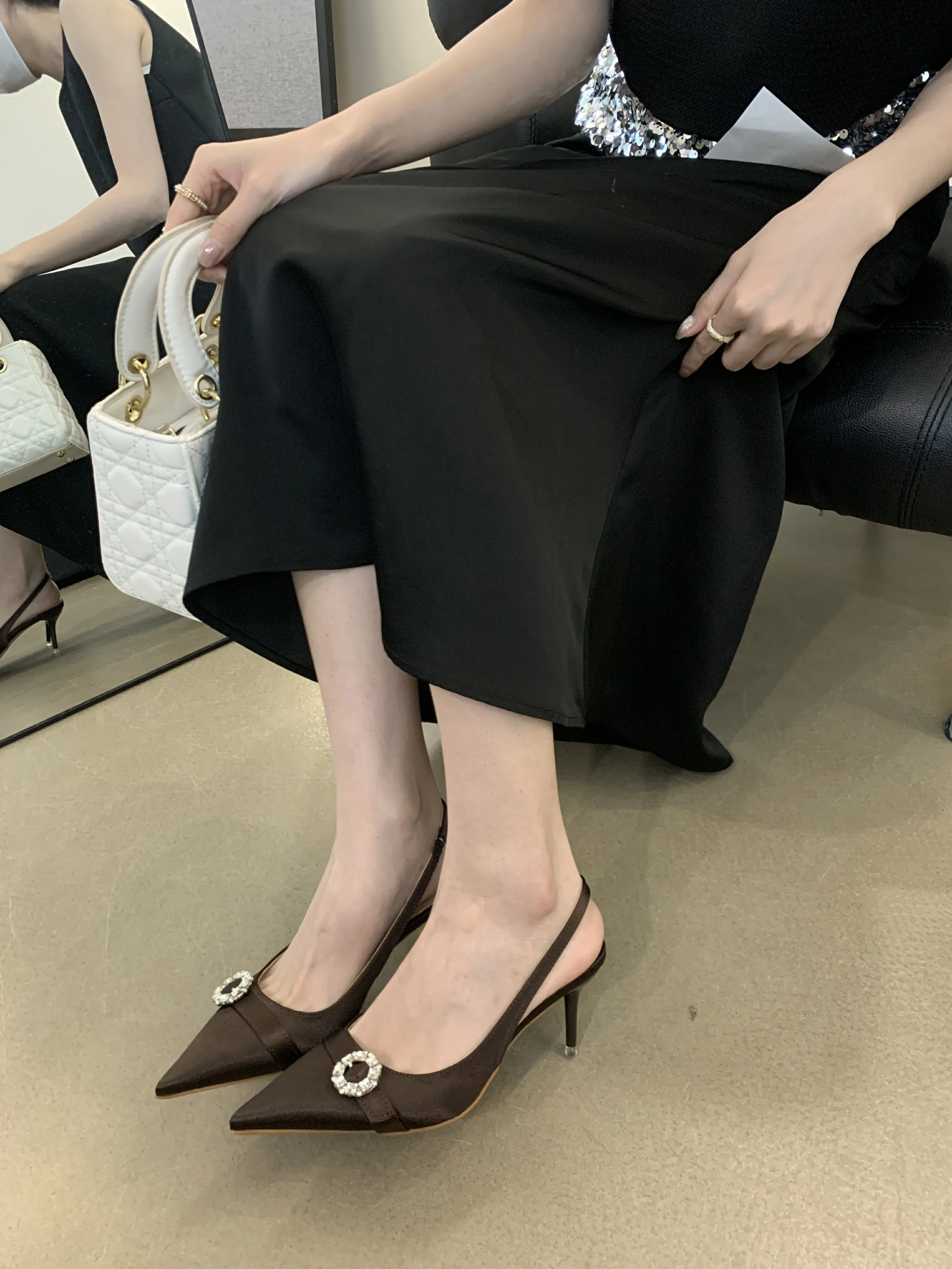 2024 New French pointed rear empty shoes women's spring and summer Baotou elegant women's shoes