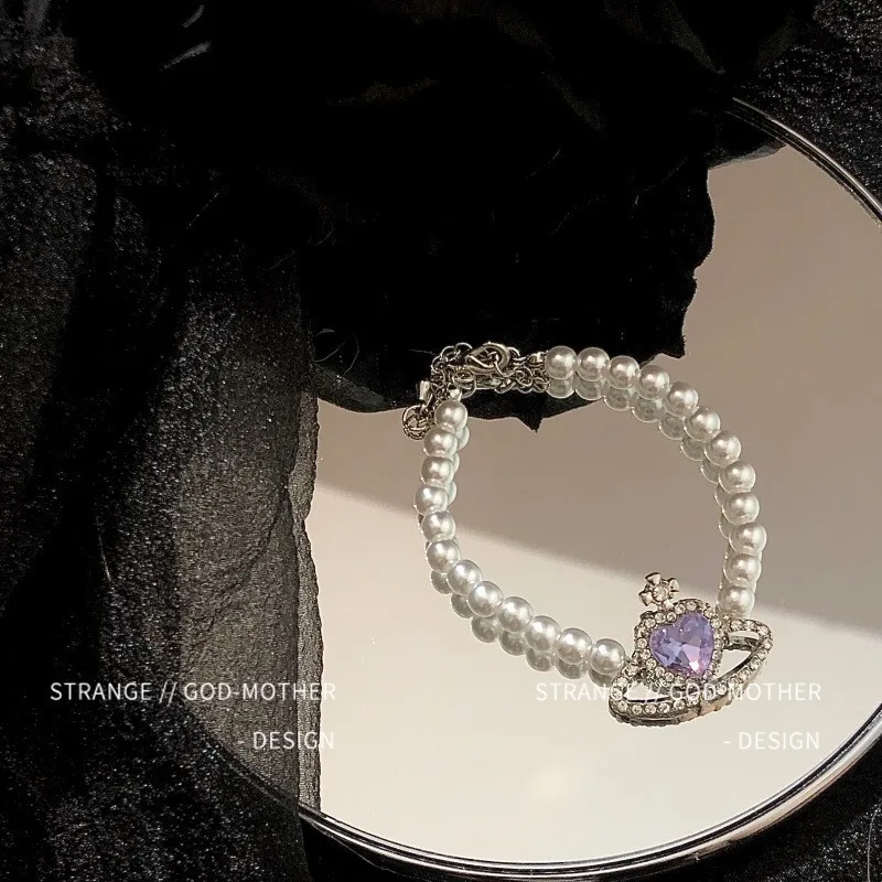 Trendy Spaceman Couple Pearl Bracelet Plated Astronaut Jewelry Elastic Small Beads Bracelet
