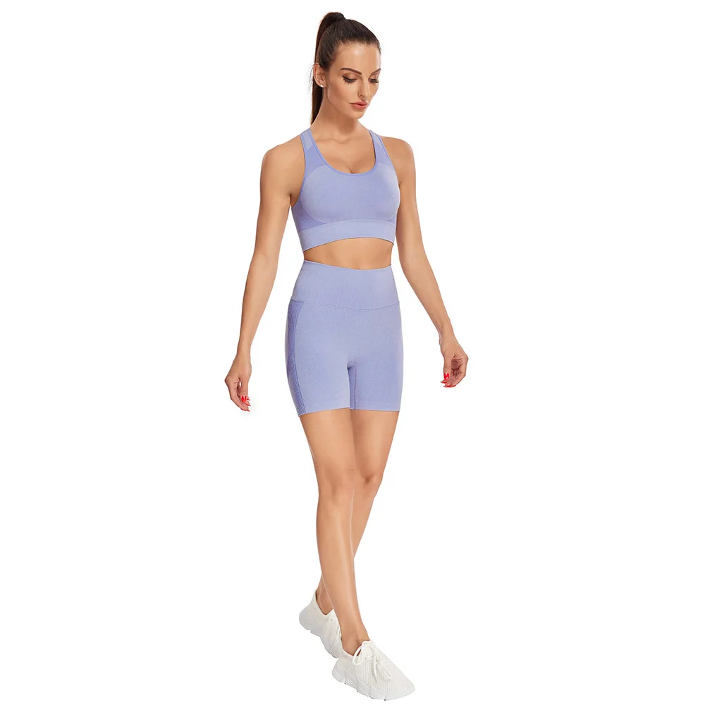 2021 new seamless knitting suit women's Sexy Sports short sleeve shorts Yoga suit