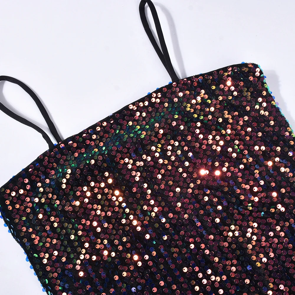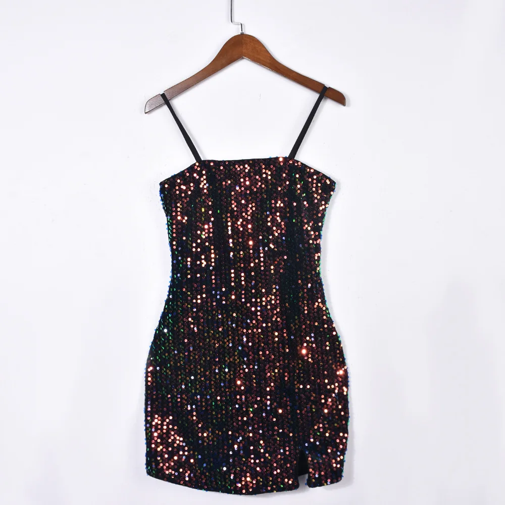 2024 New Style Women Sling Sleeveless Backless Sexy Dress Fashion Sequin Nightclub Short Skirt