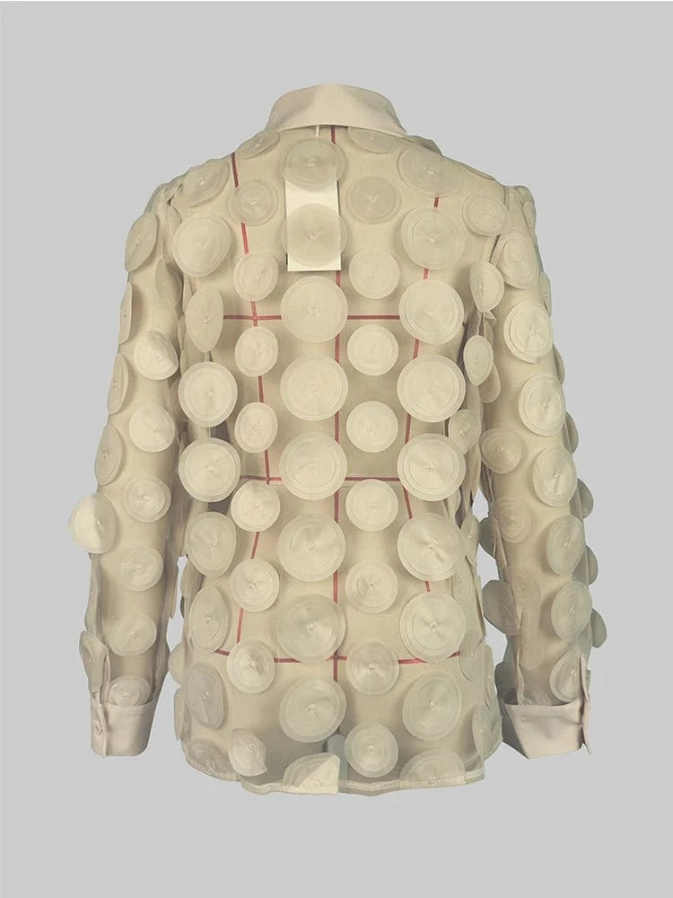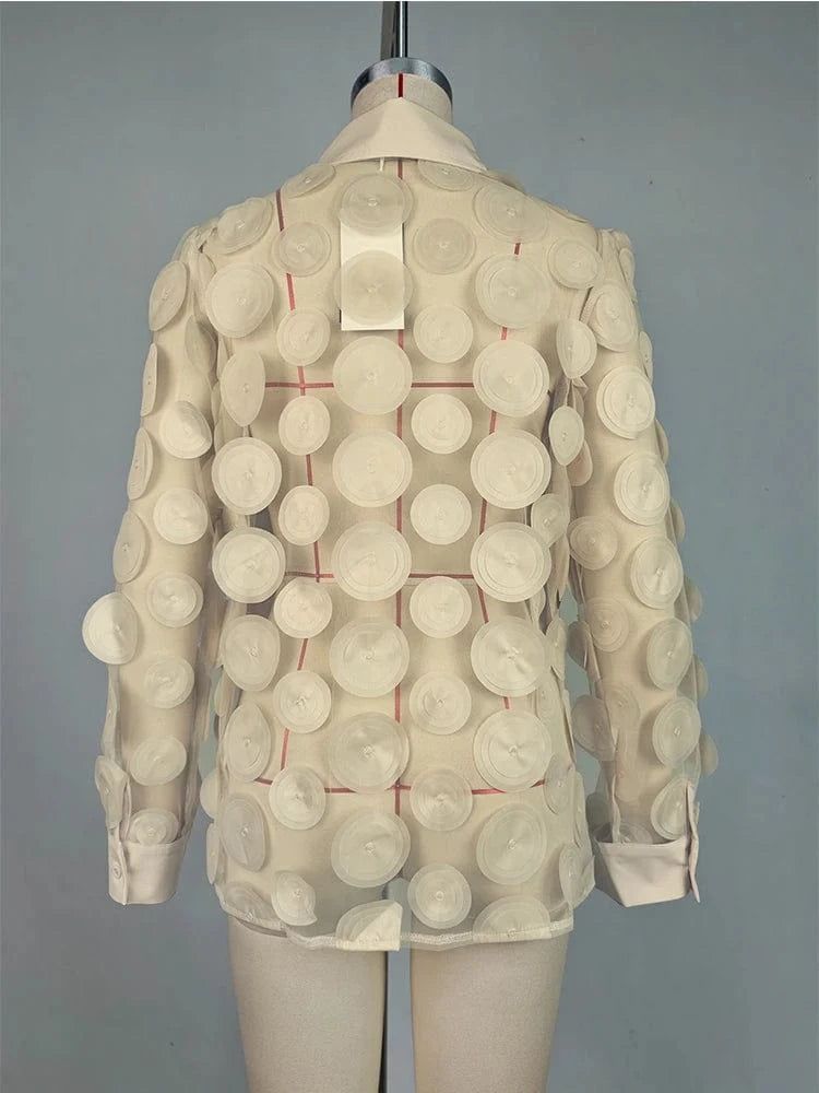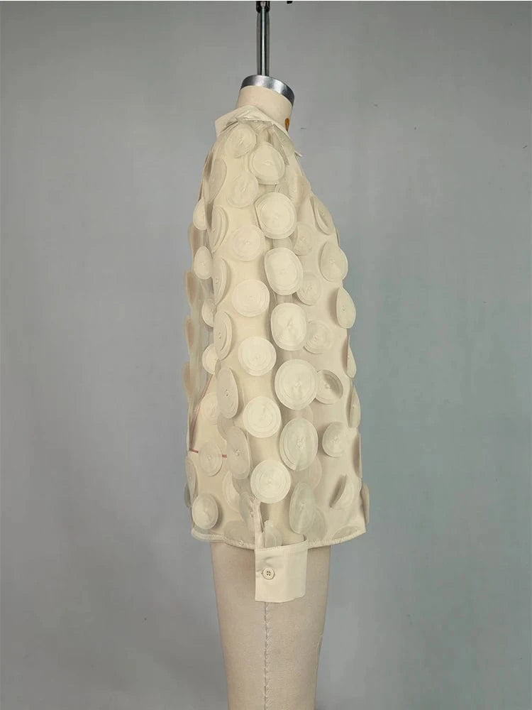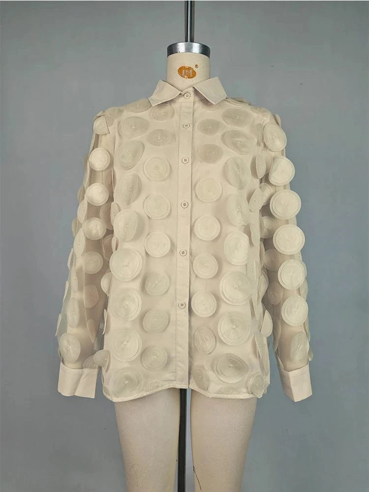 2024 New T-shirt for Women Hollowed Long Sleeves Appliqued Lapel Shirt Urban Female Stylish Loose Fit Buttoned Blouses
