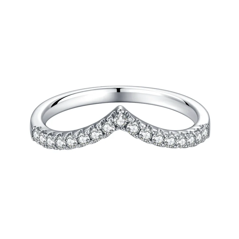 2024 New Trendy Clear 1.5mm Moissanite Stone White Gold Plated Line Ring 925 Sterling Silver Fine Jewelry custom 14k gold plated