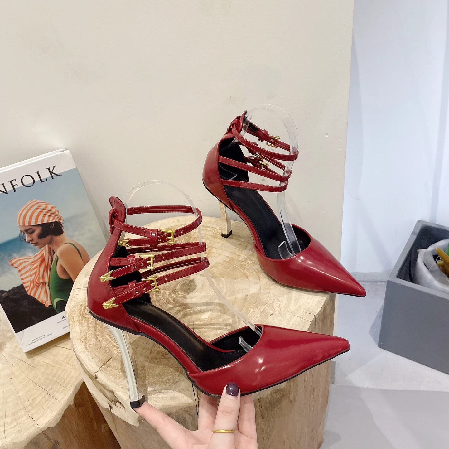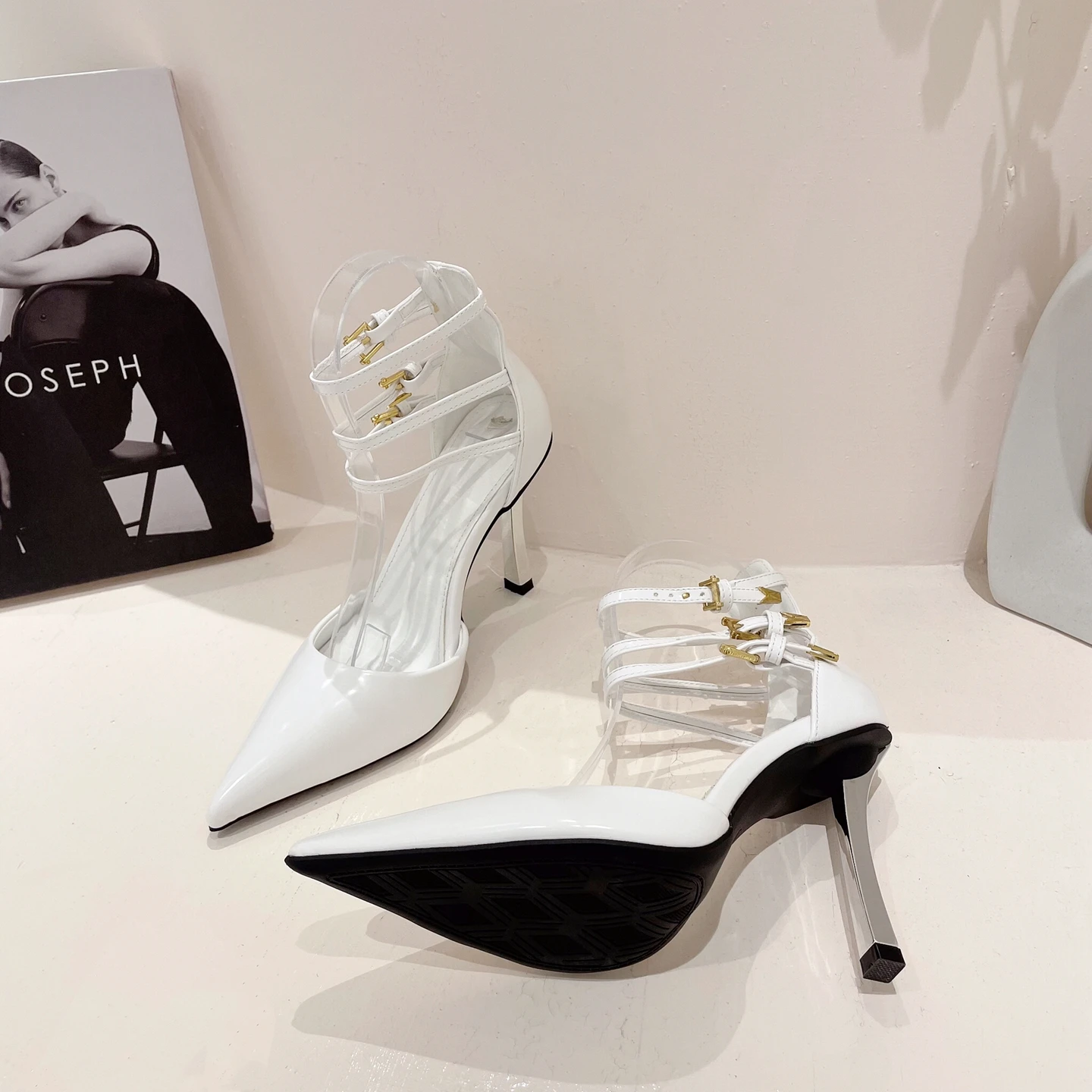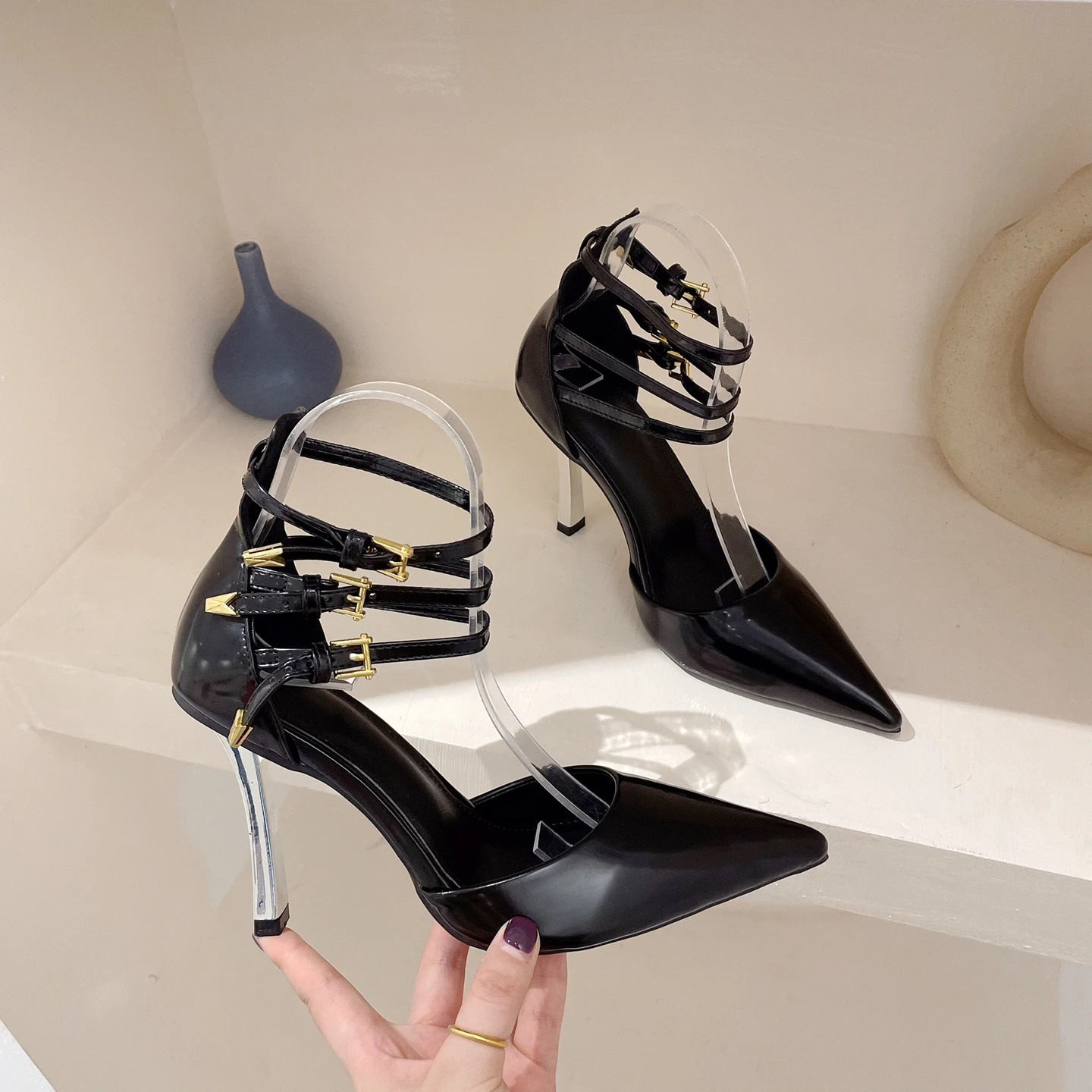 2024 New type heel Roman pointed high heels ultra high heel metal buckle shoes wedding shoes ready stock hot sale