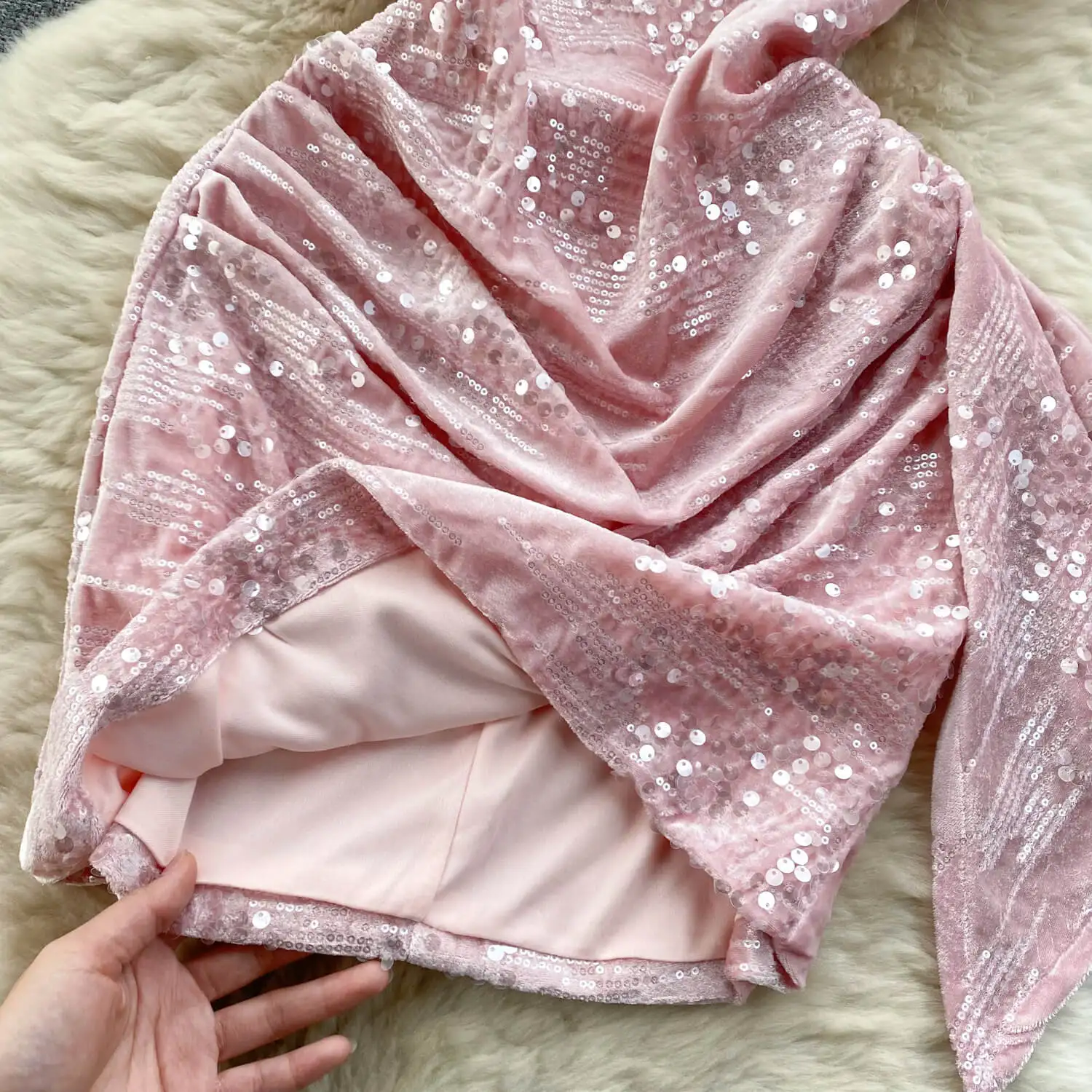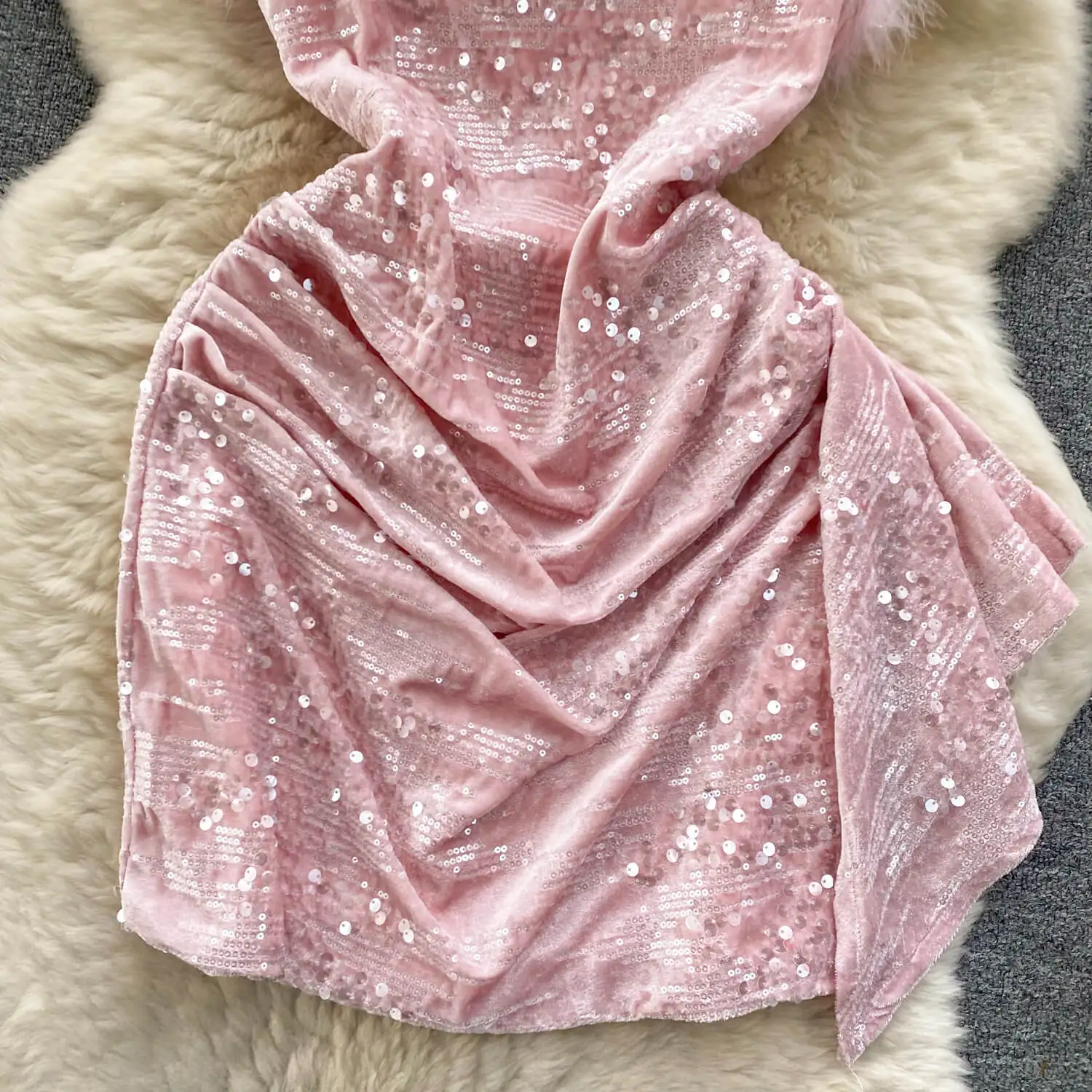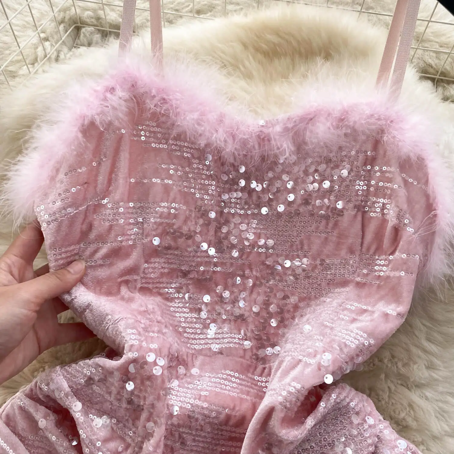 2024 New Year Dress Stitching Sequins Sexy Skirt Base Strap Dress