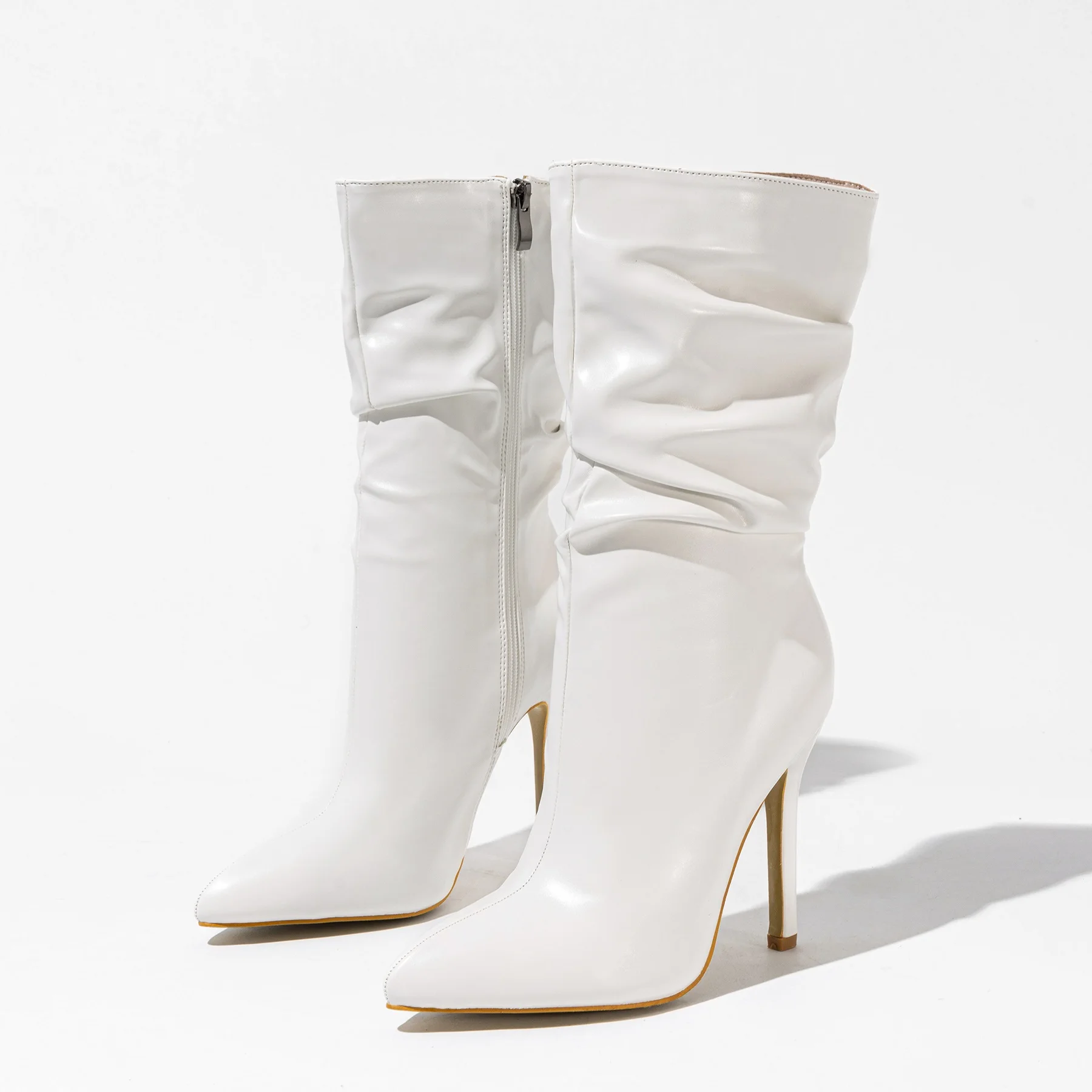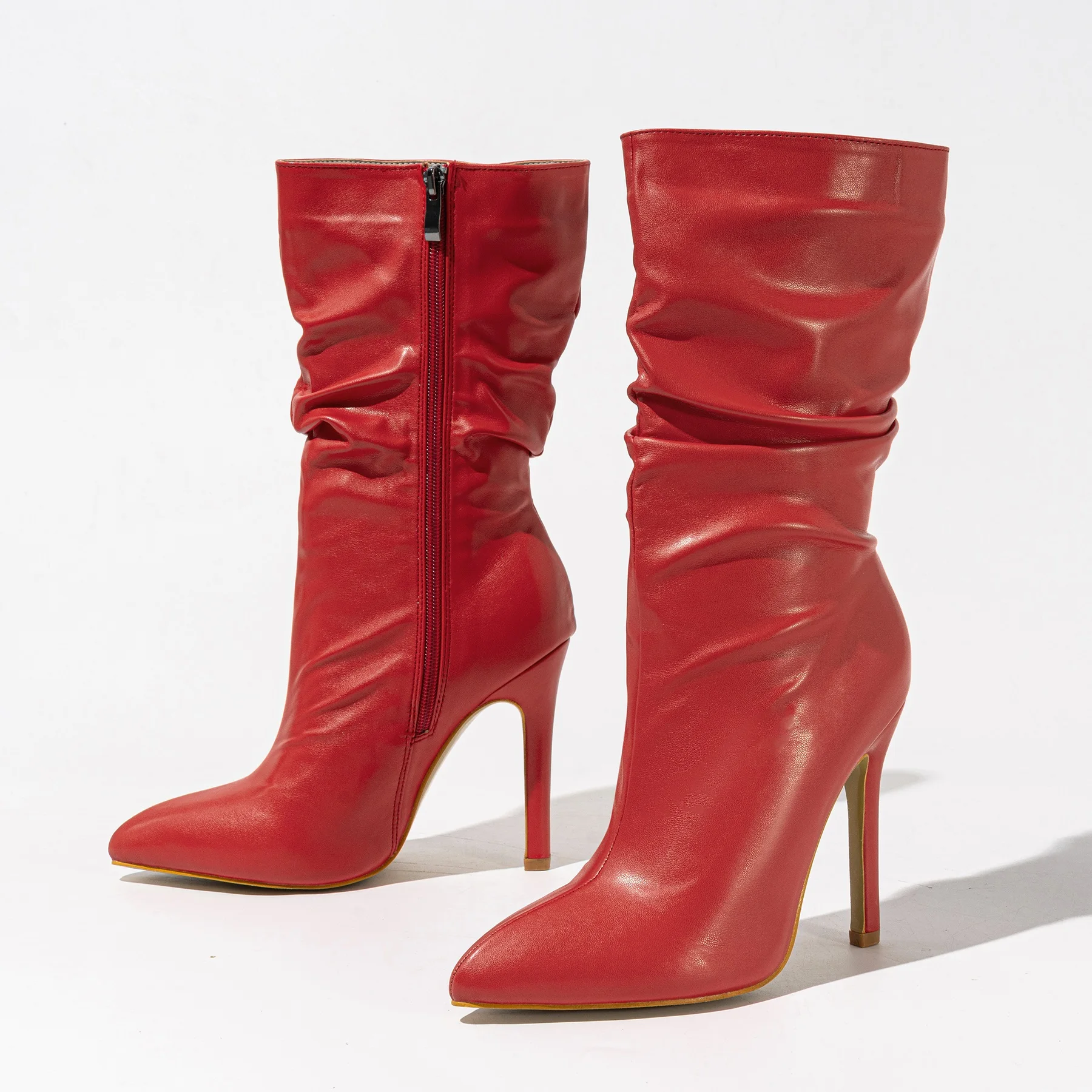 2024 ready stock pointed stiletto short boots Women's European and American catwalk high heel side zipper character bare feet 42