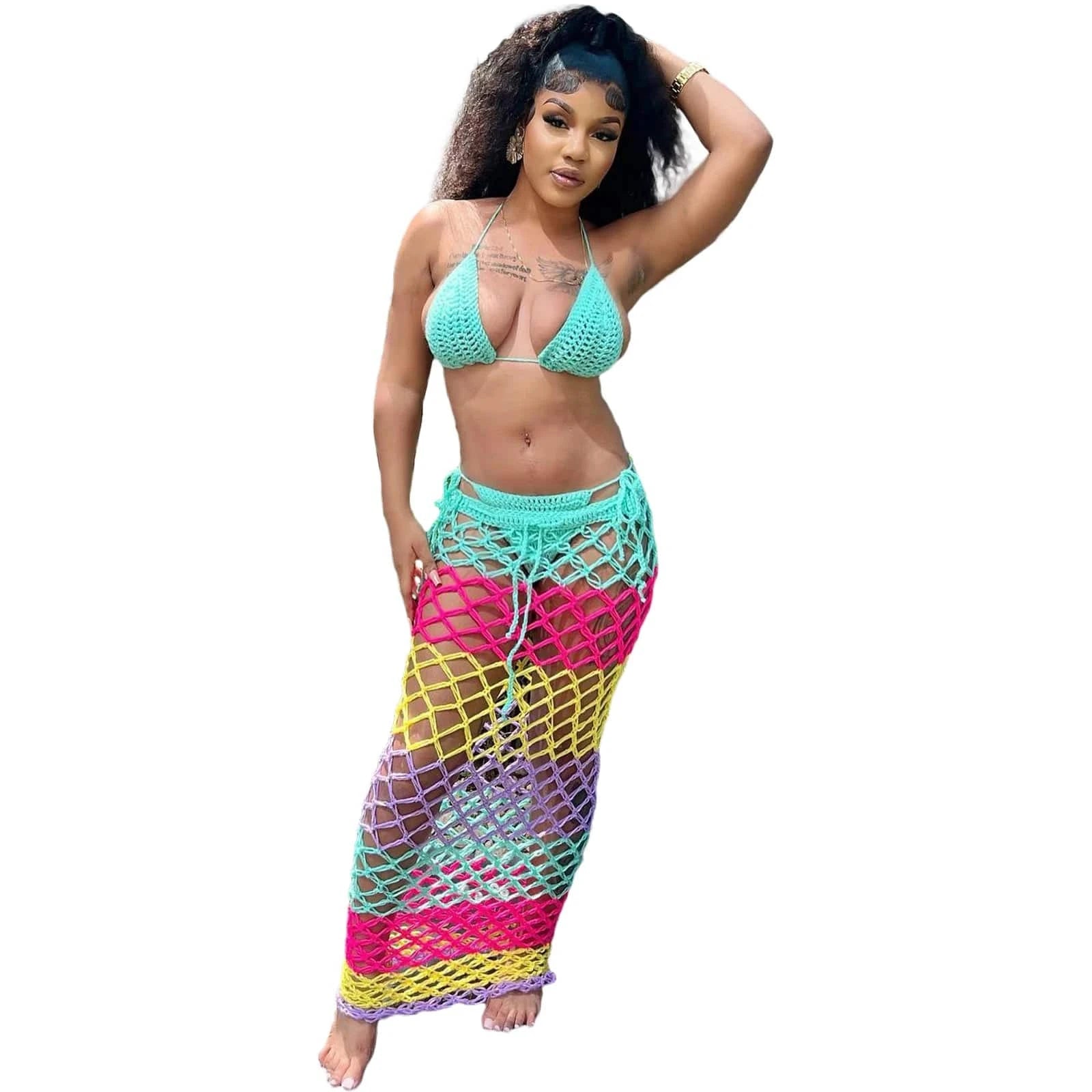 2024 sexy girls brazilian rainbow hand made crochet bikini set with skirt