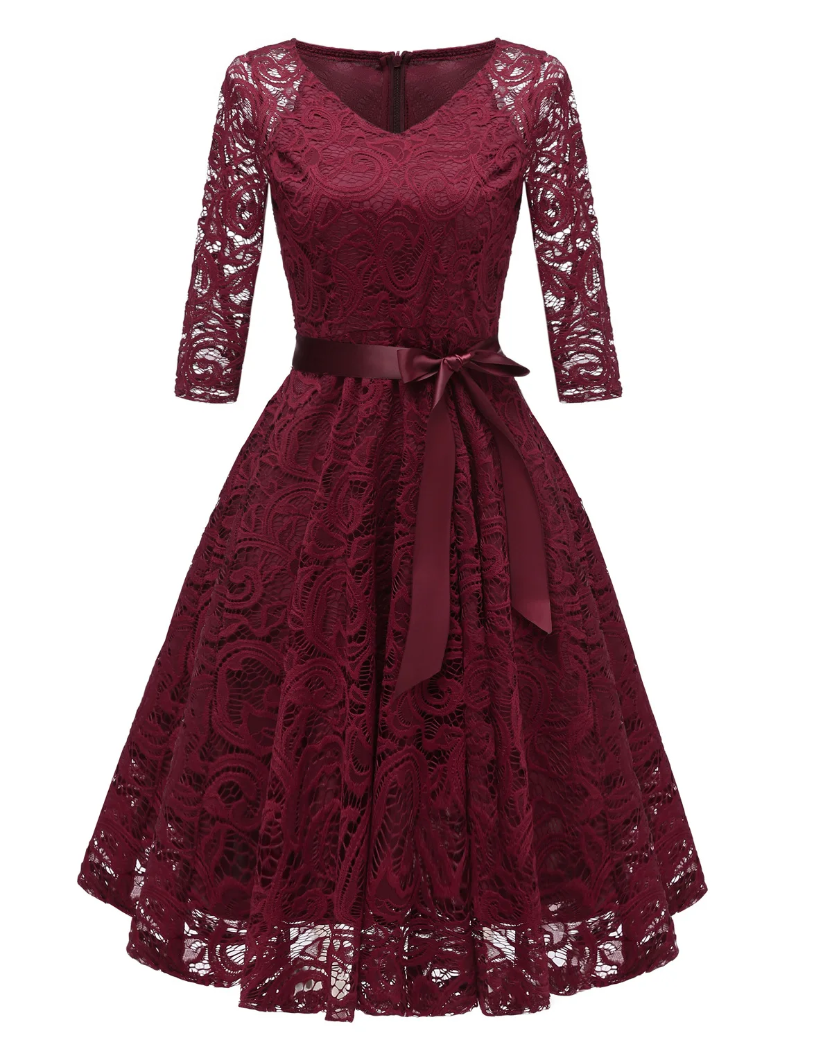 2024 Spring Festival women's lace long sleeve V-neck dress Women's sexy lace hollow dress Party Dress