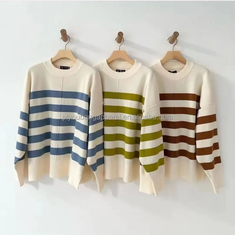 2024 spring new arrival fashion lady crew neck batwing sleeve oversized stripe women sweater