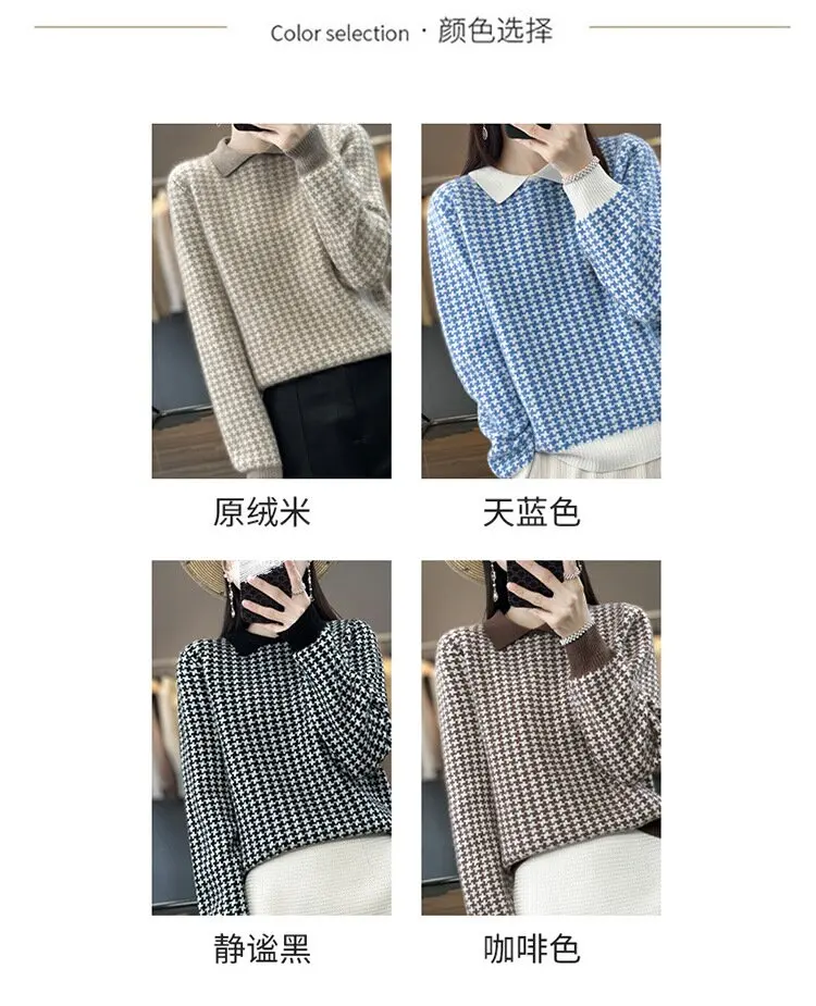 2024 Spring new arrival fashion women's lapel long sleeve loose plaid jacquard high-quality best-selling pullover sweater