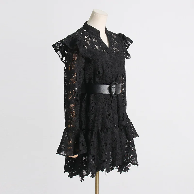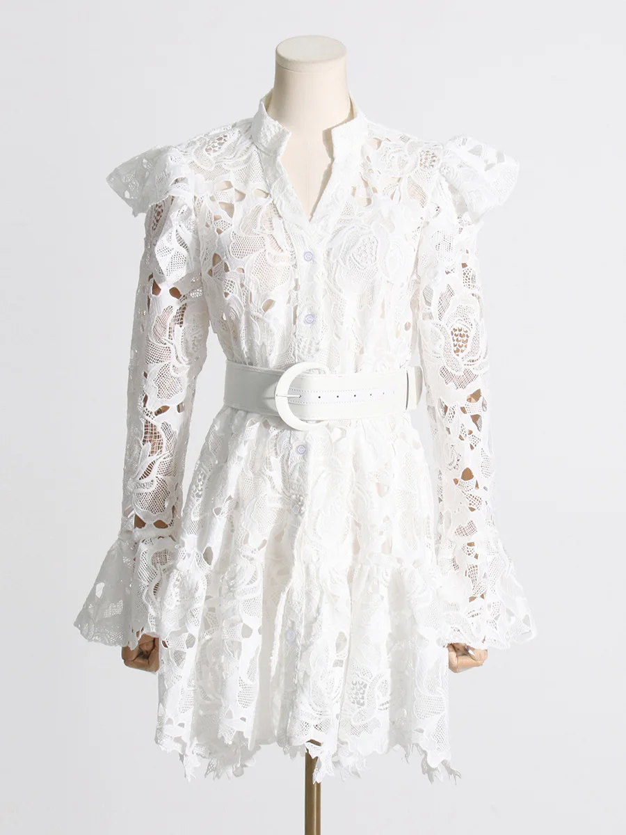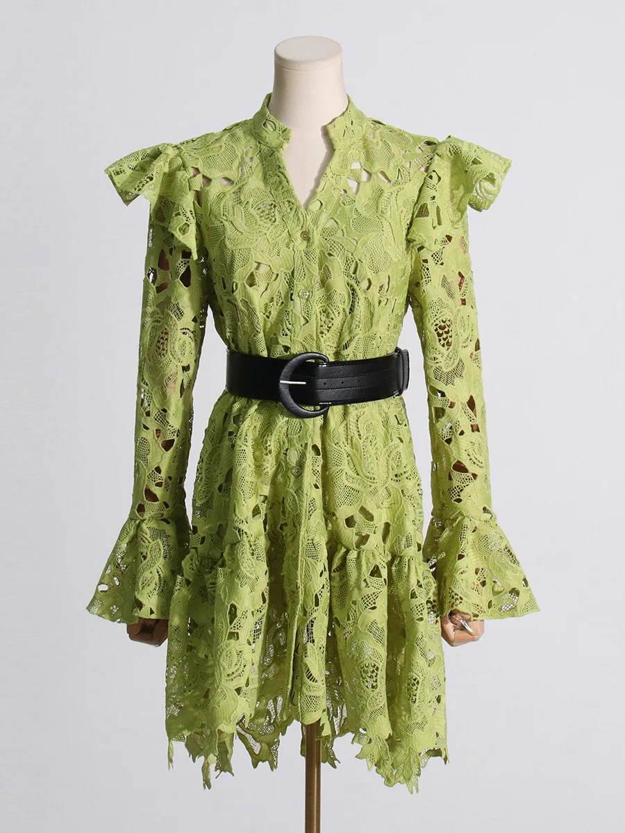 2024 Spring New Arrival French Style Lace Embroidery Patchwork Women Casual Dress