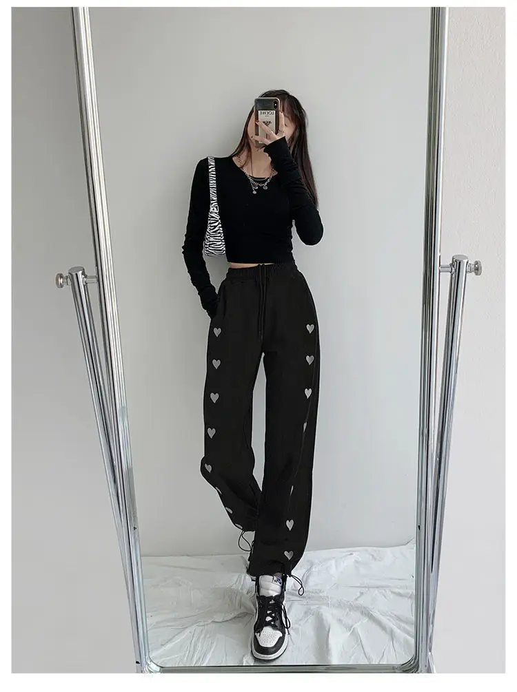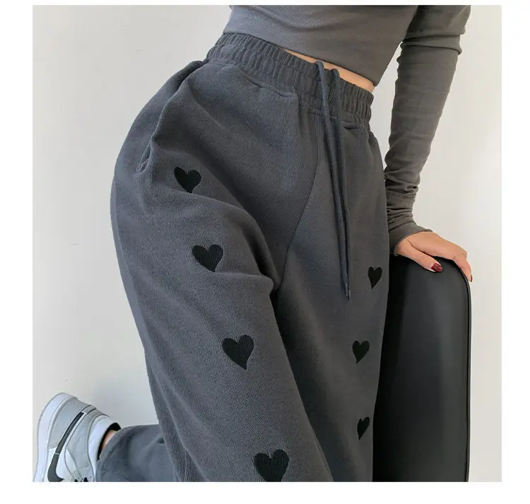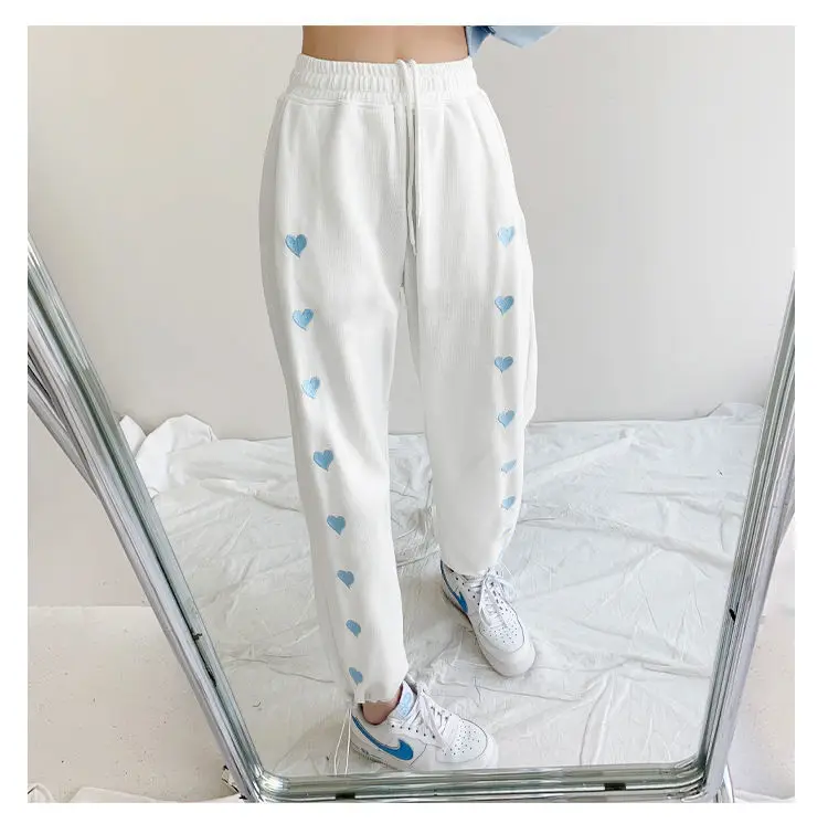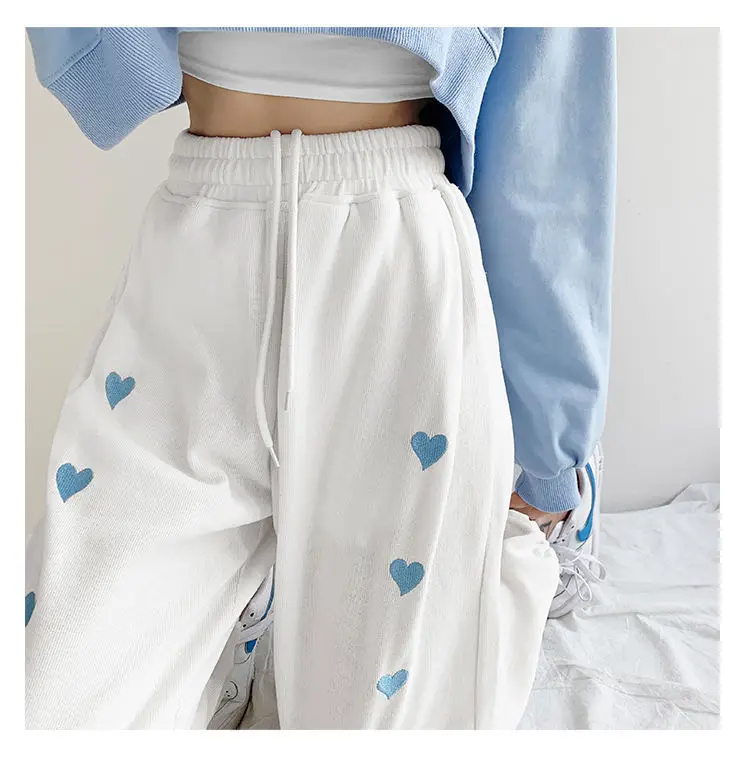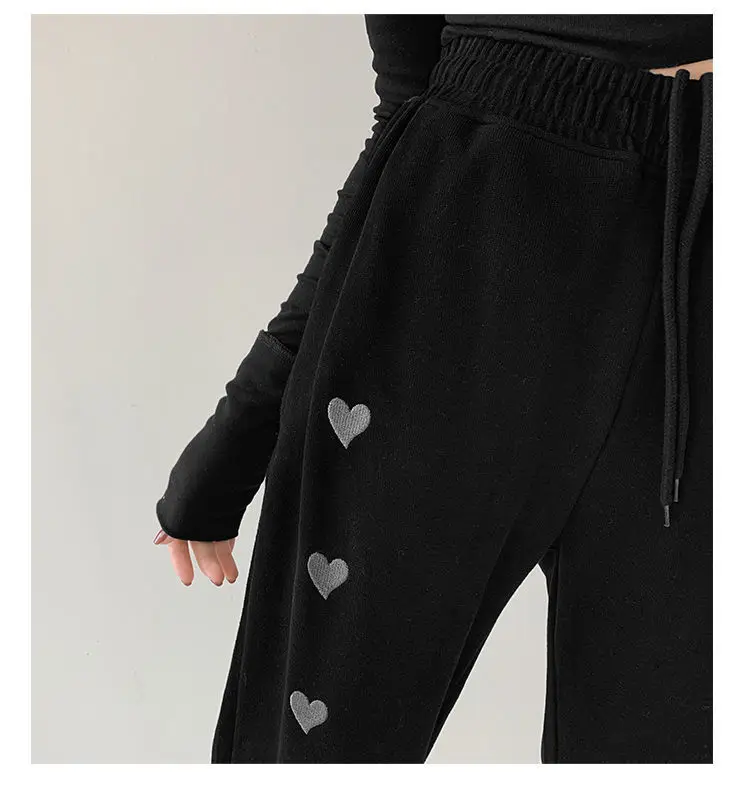 2024 Spring New Embroidered Love Sports Pants Women'S Drawstring Drawstring High Waist Loose Casual Straight Wide Leg Pants
