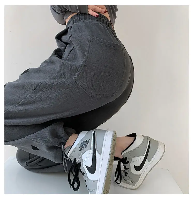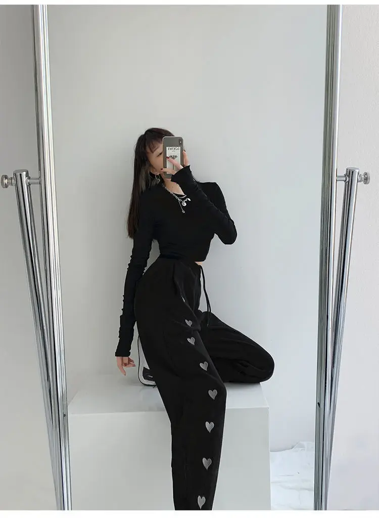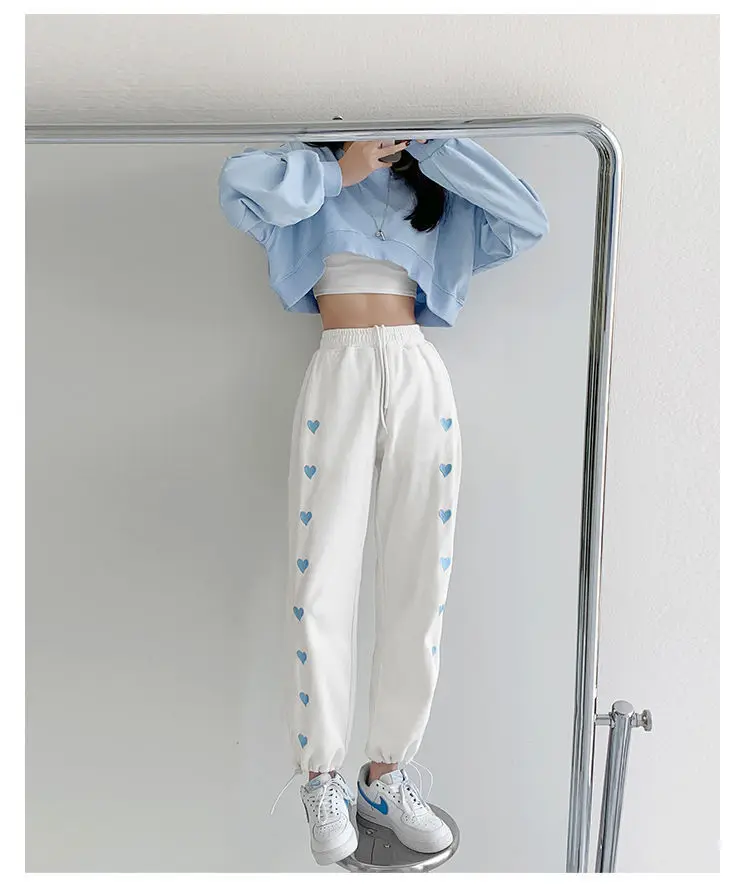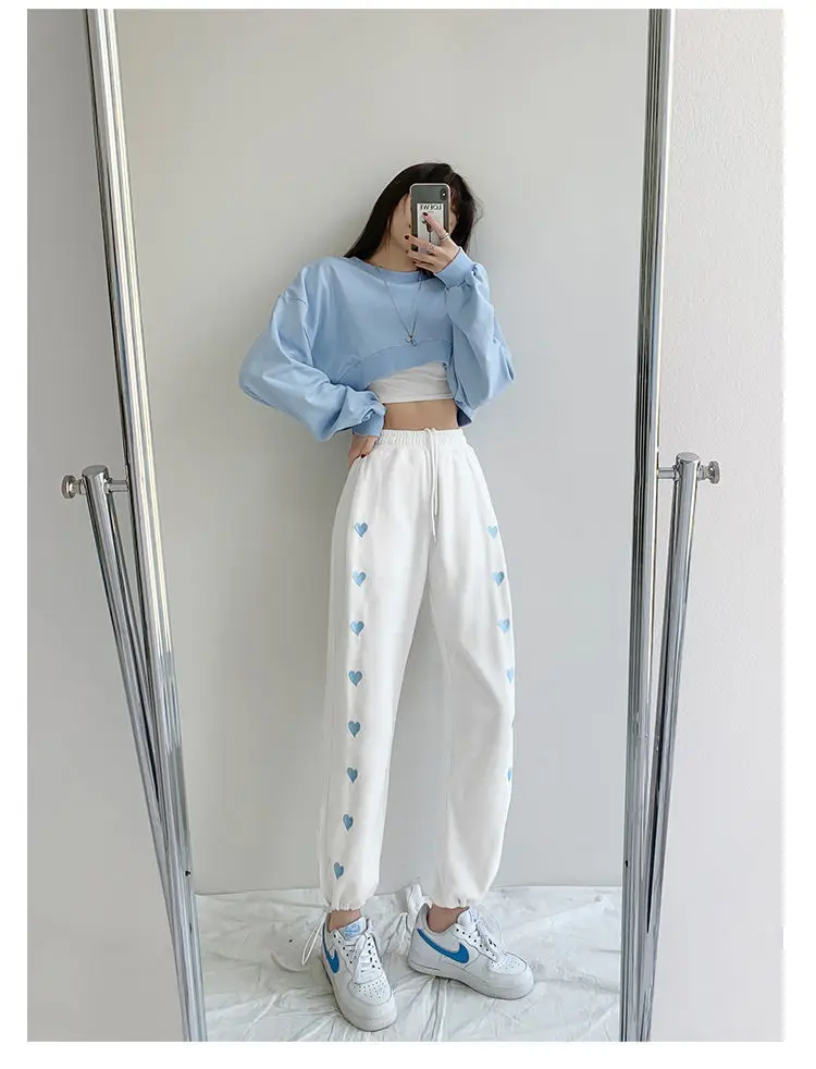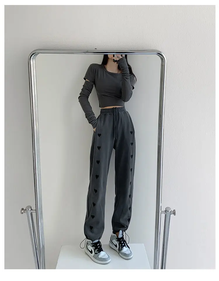 2024 Spring New Embroidered Love Sports Pants Women'S Drawstring Drawstring High Waist Loose Casual Straight Wide Leg Pants