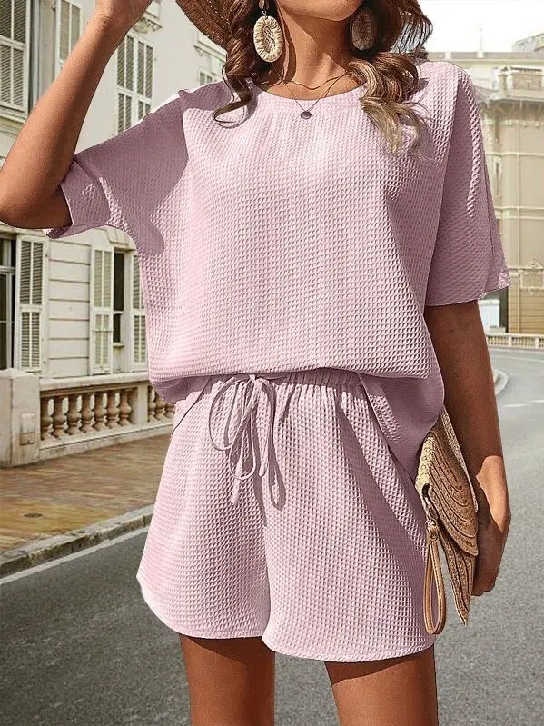 2024 Spring Summer New Fashion Style women lady Casual New Short Sleeved Shirt Shorts Pure Color Two Piece Set