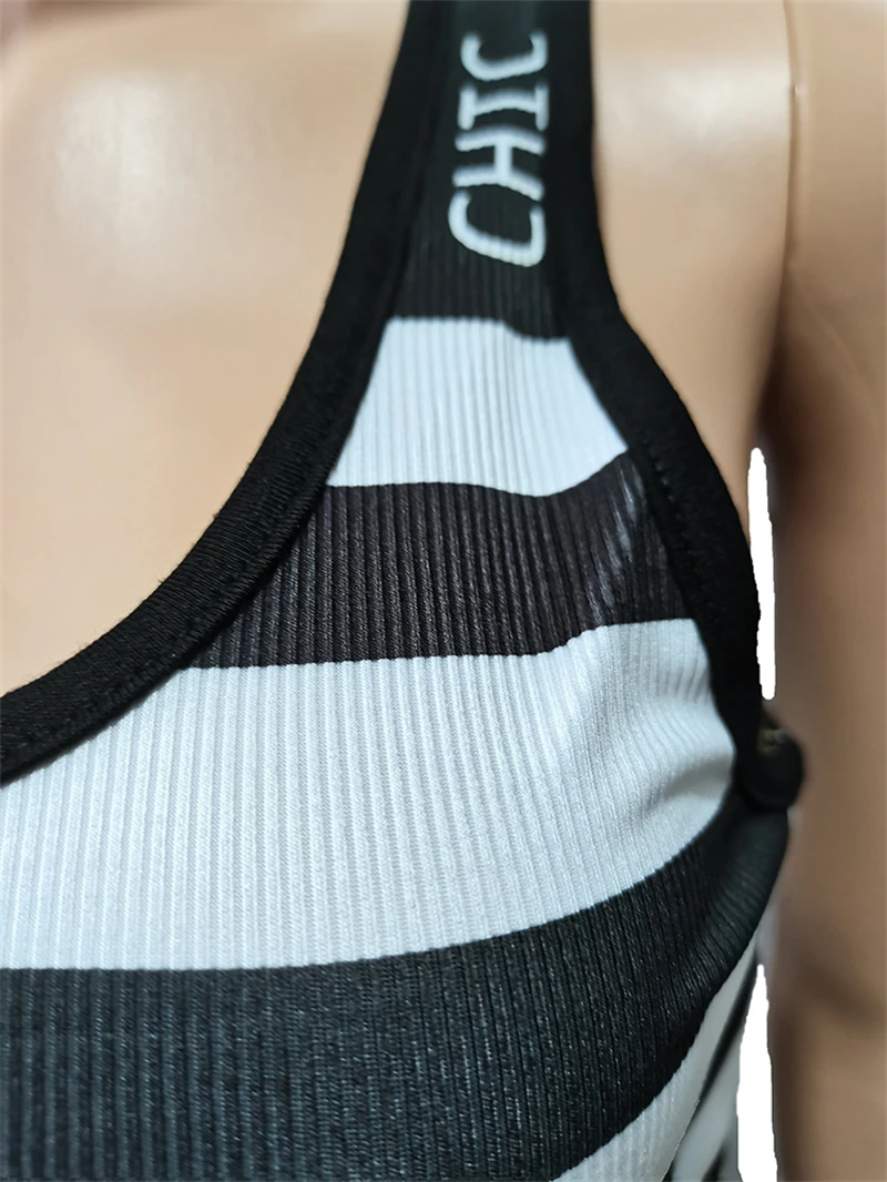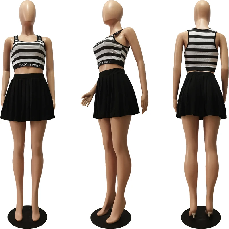 2024 summer luxury high quality women ladies y2k stripe wide strap tank top vest and mini skirt two 2 piece set outfit for women