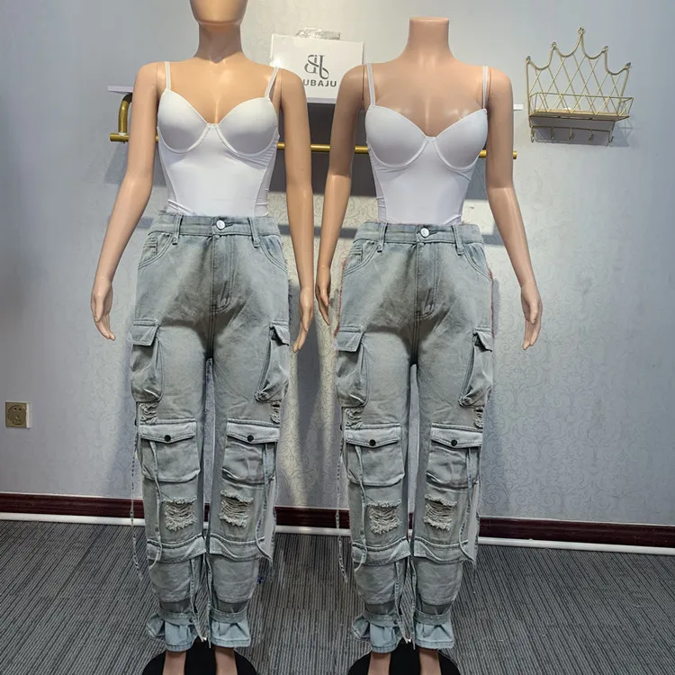 2024 Summer New Sleeveless Corset Tank Tops +Cargo Denim Pants Two-piece Sets Women