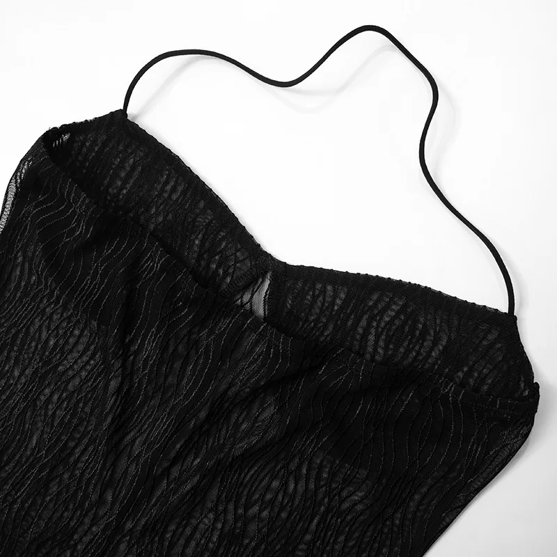 2024 Summer Sexy Halter Mesh See Through Jumpsuits Women Sleeveless Skinny Pencil Pants One Piece Rompers