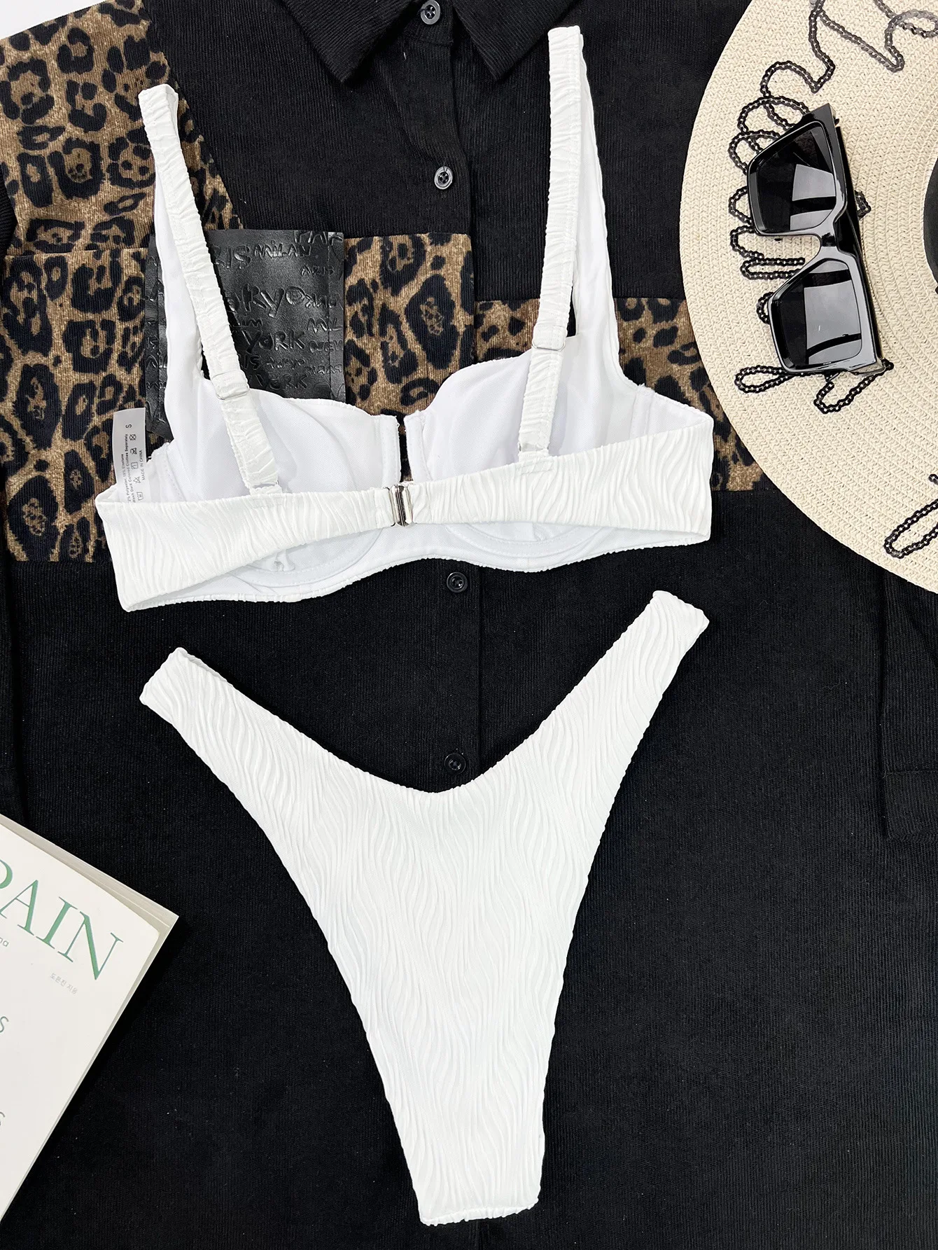 2024 Summer White Push Up Bikini Set Bandage Swimwear Halter Swimsuit Women Push Up Underwire Bathing Suit Biquini