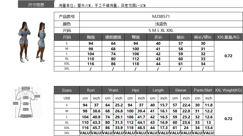 2024 Summer Women denim set Stretch jackets+ Pockets Shorts Matching Sets Ladies Y2K Two Piece Denim women clothes set