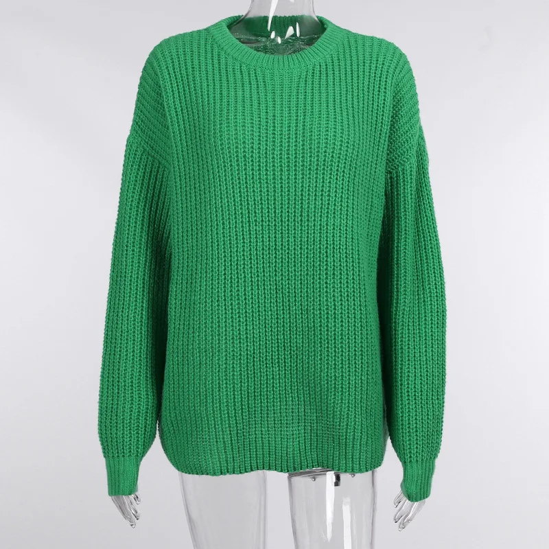 2024 Versatile casual, loose, long-sleeved, round-neck sweater in solid color