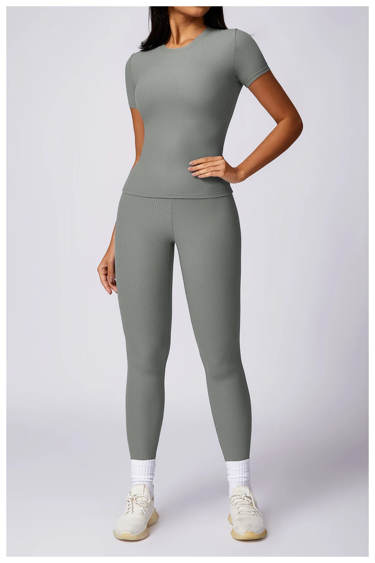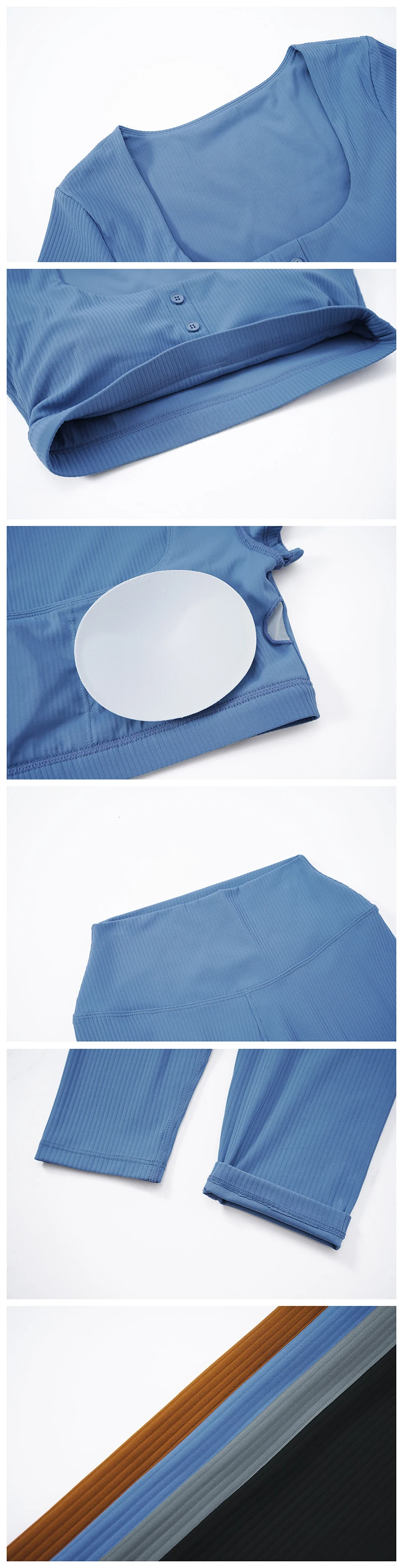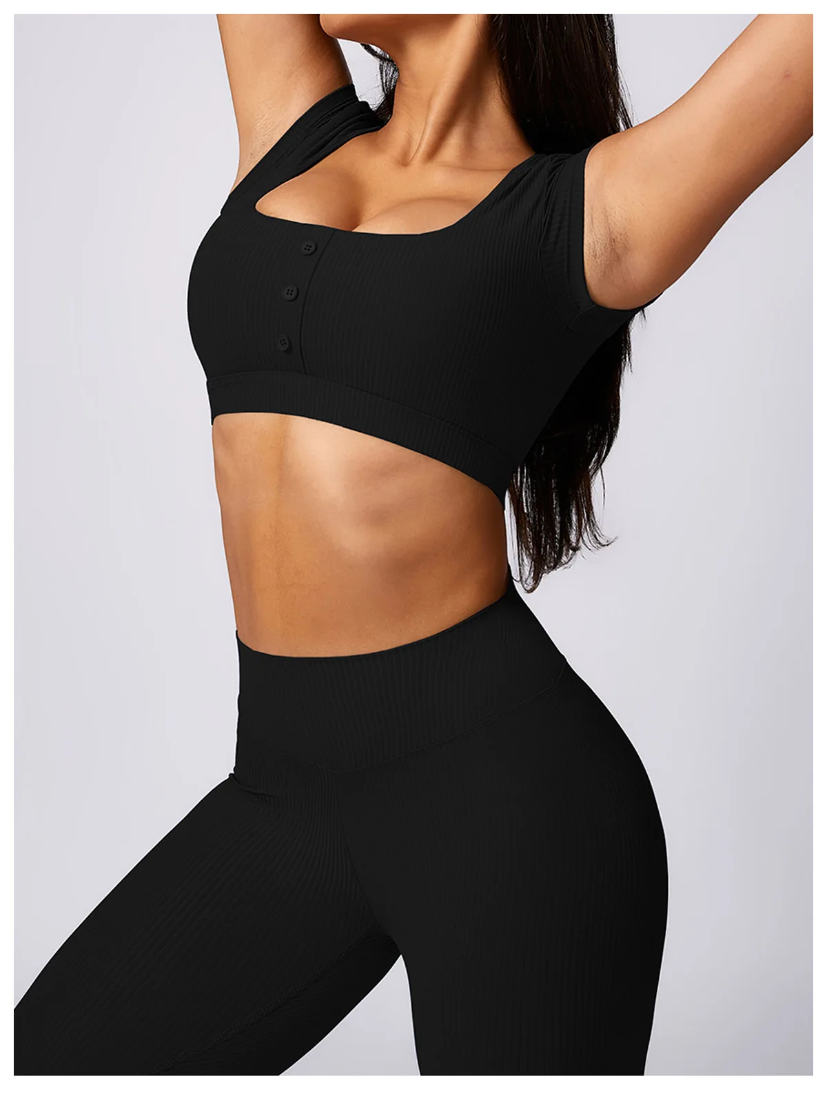 2024 Women 2 Piece Gym Workout Suit Square Neck Sports Bra Tshirt Tank Top Butt Lift Legging Set Ladies Ribbed Fitness Yoga Sets