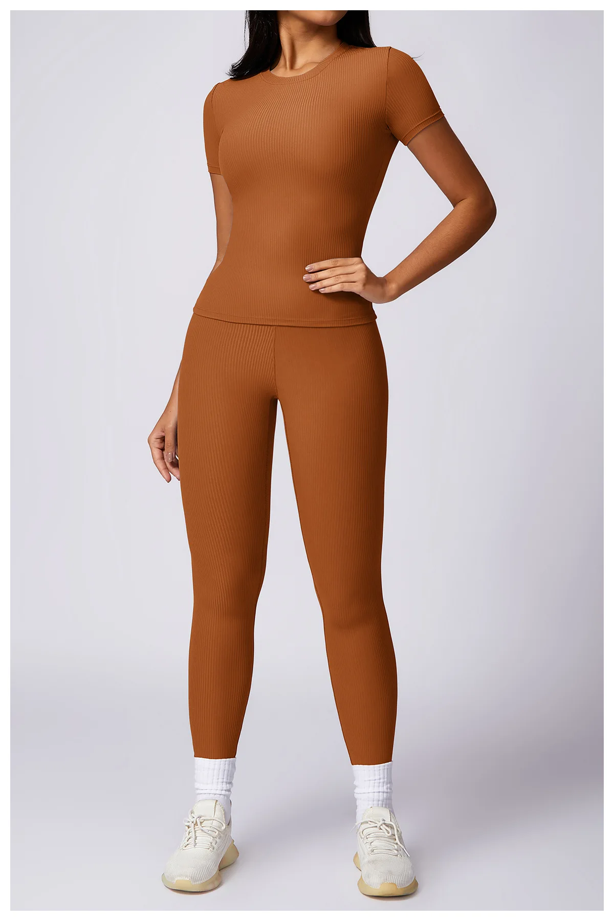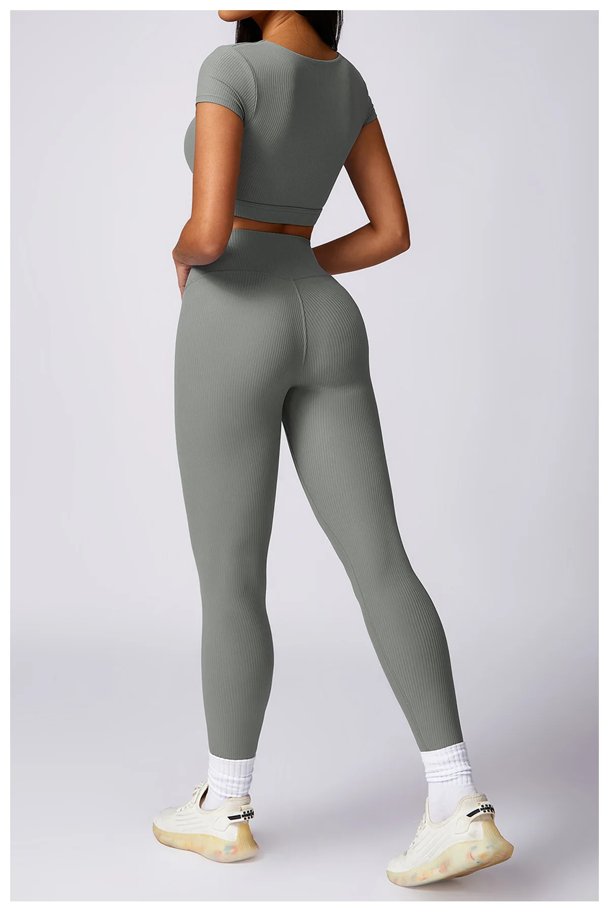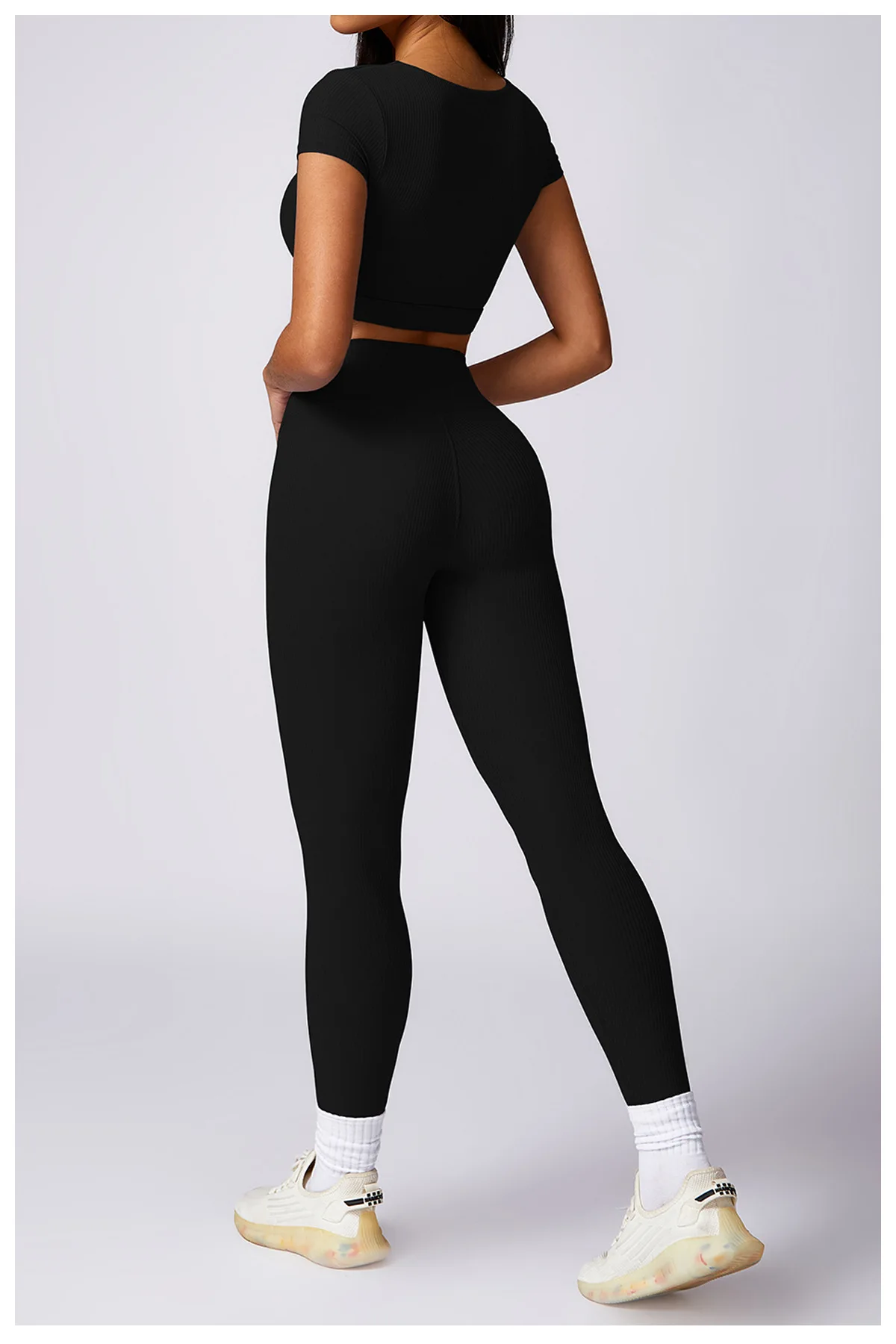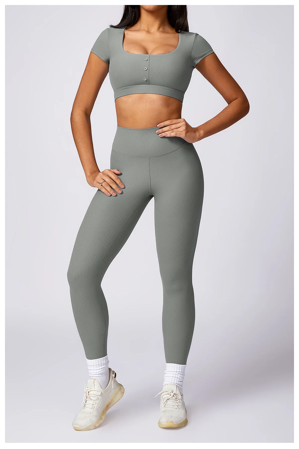 2024 Women 2 Piece Gym Workout Suit Square Neck Sports Bra Tshirt Tank Top Butt Lift Legging Set Ladies Ribbed Fitness Yoga Sets