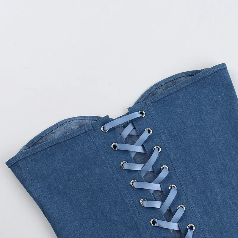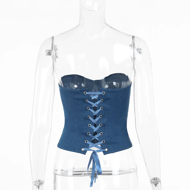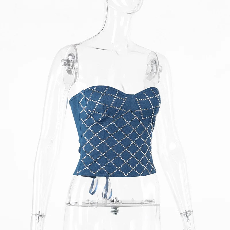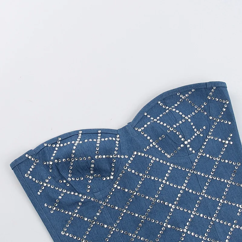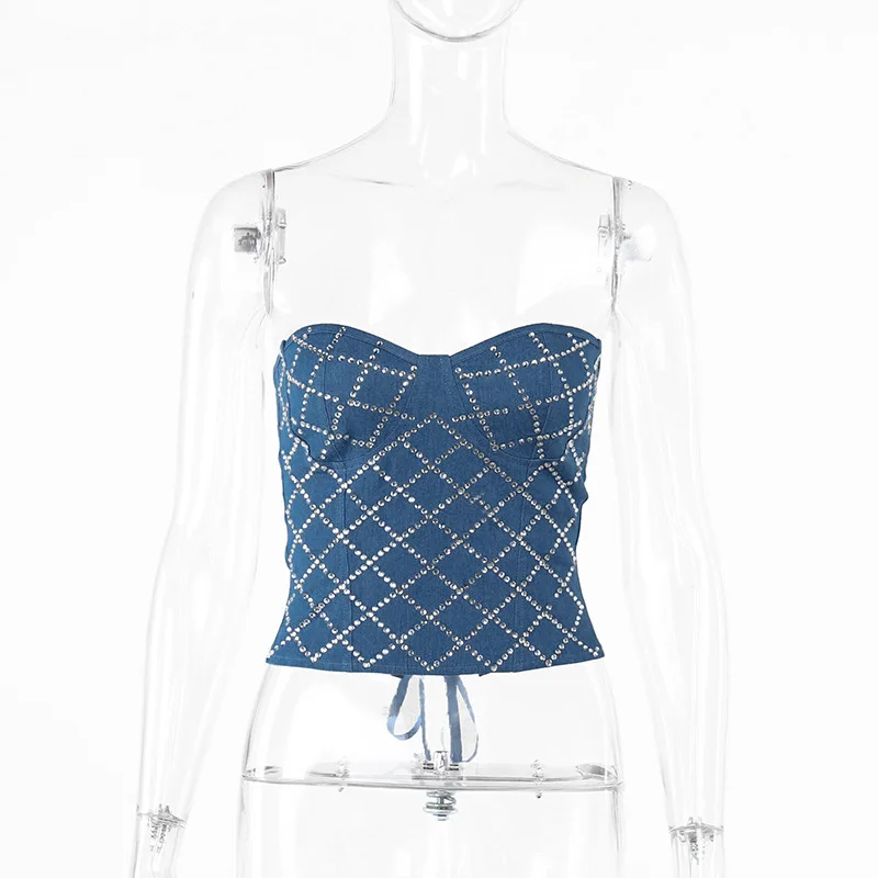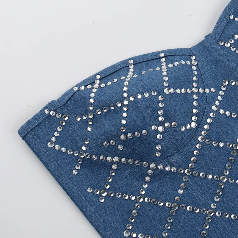 2024 Women Diamond Fashion Strapless Denim Corset Women Backless Bandage Female Sexy Tank Top