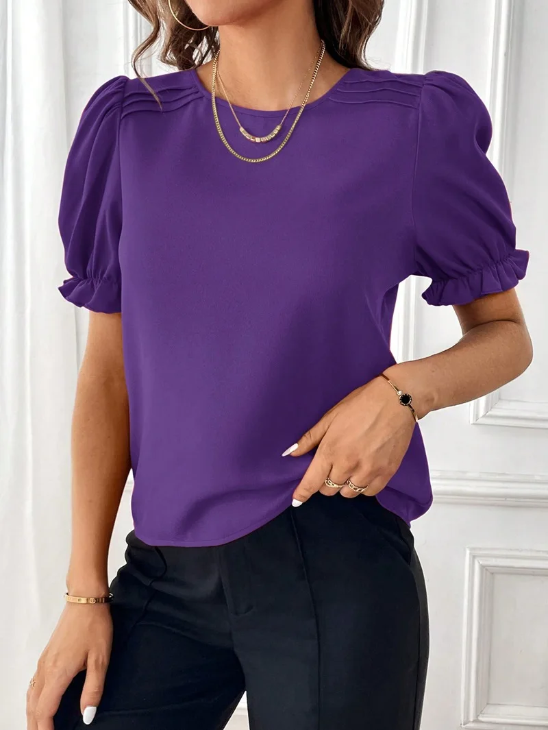 2024 Women Lady Hot Sale Elastic Short Sleeve Summer New Fashion Temperament Solid Color Round Neck Shirt Top