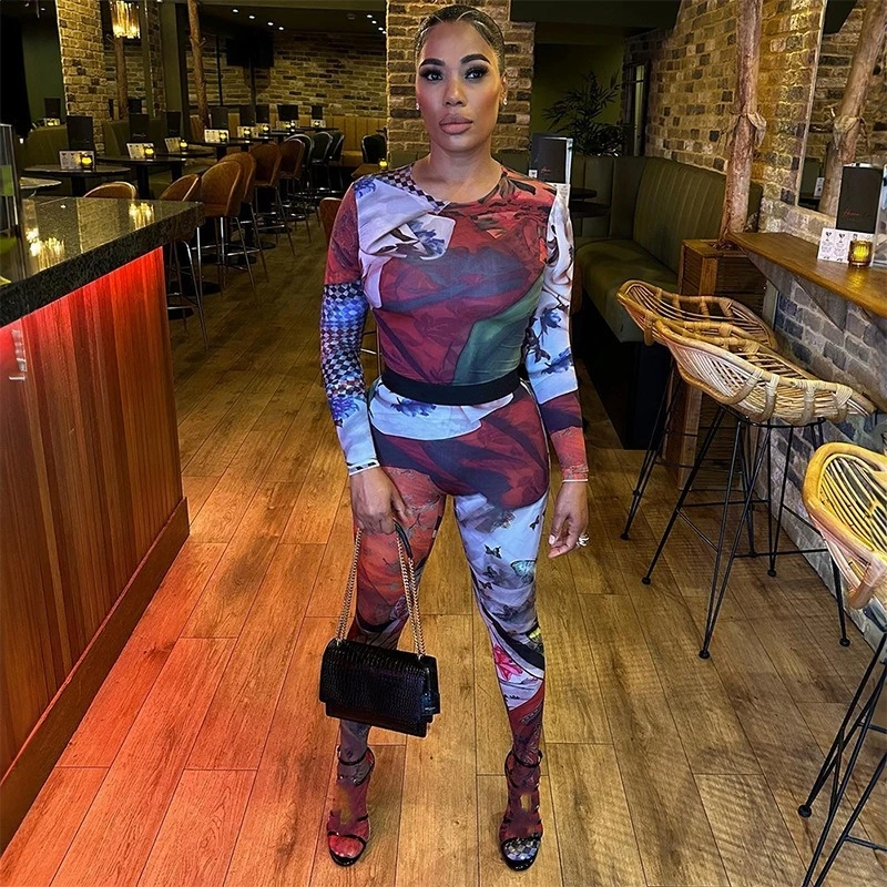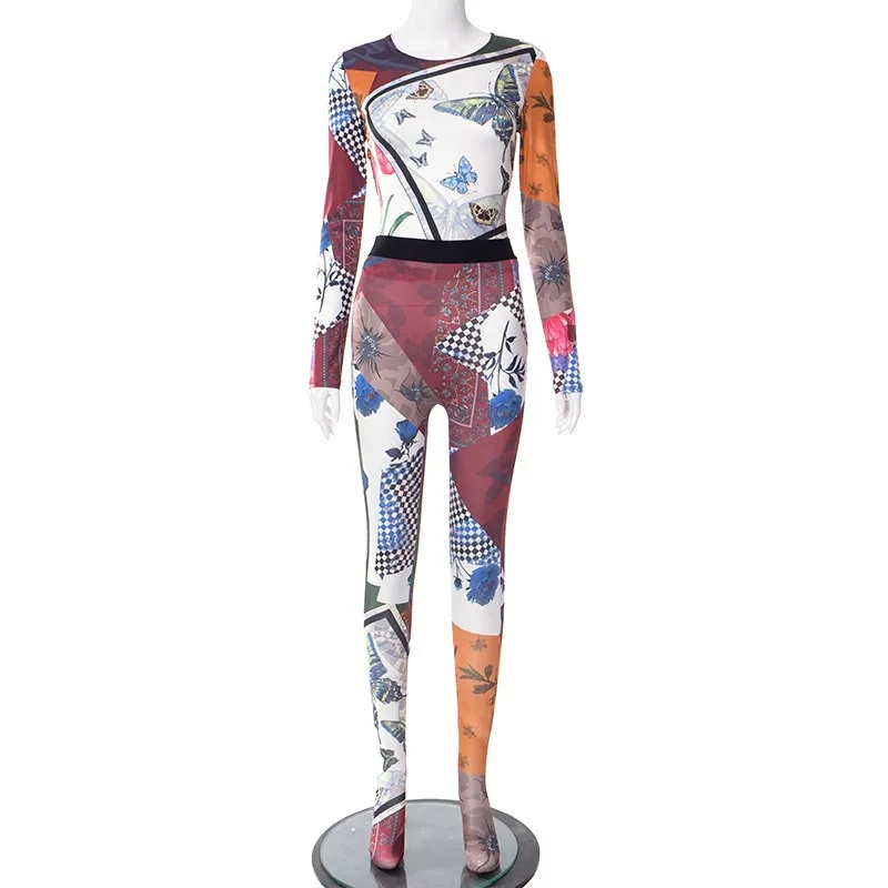 2024 Women Two Pieces Sets Colorful Printed Long Sleeve Casual Women Set With Unique Design