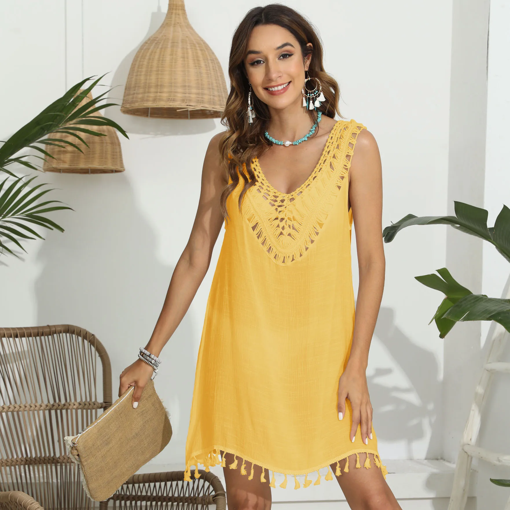 2024 Women's Beach sarongs Bikini Beachwear Cover-ups Vacation Short Summer Halter Dresses crochet beach cover ups for women