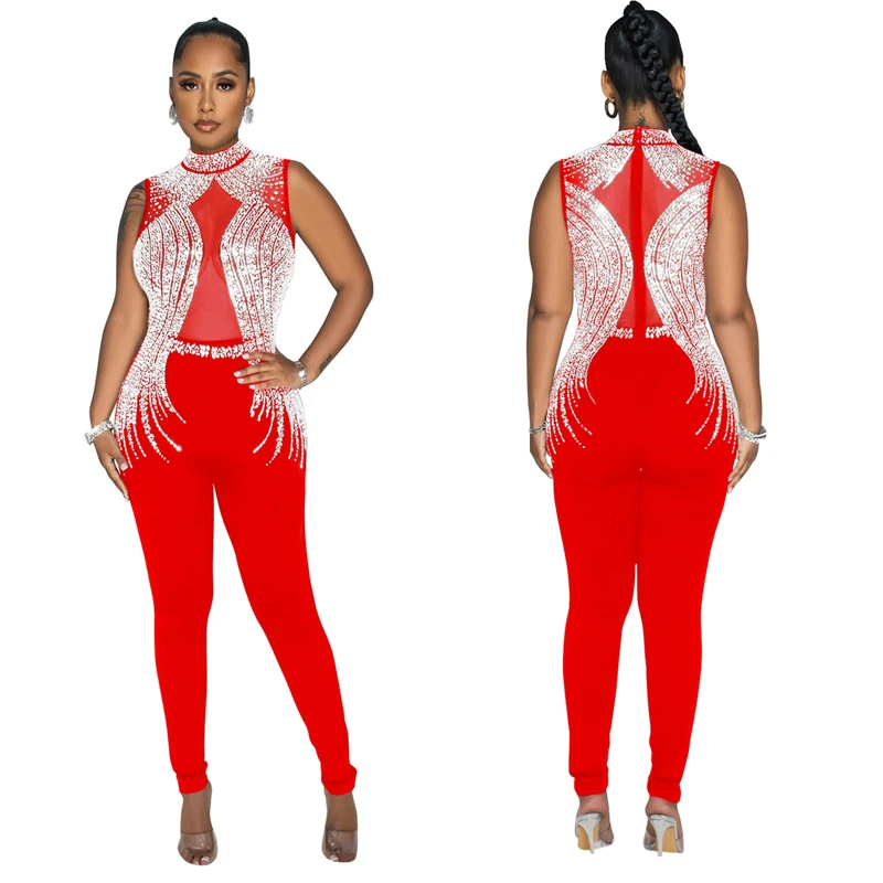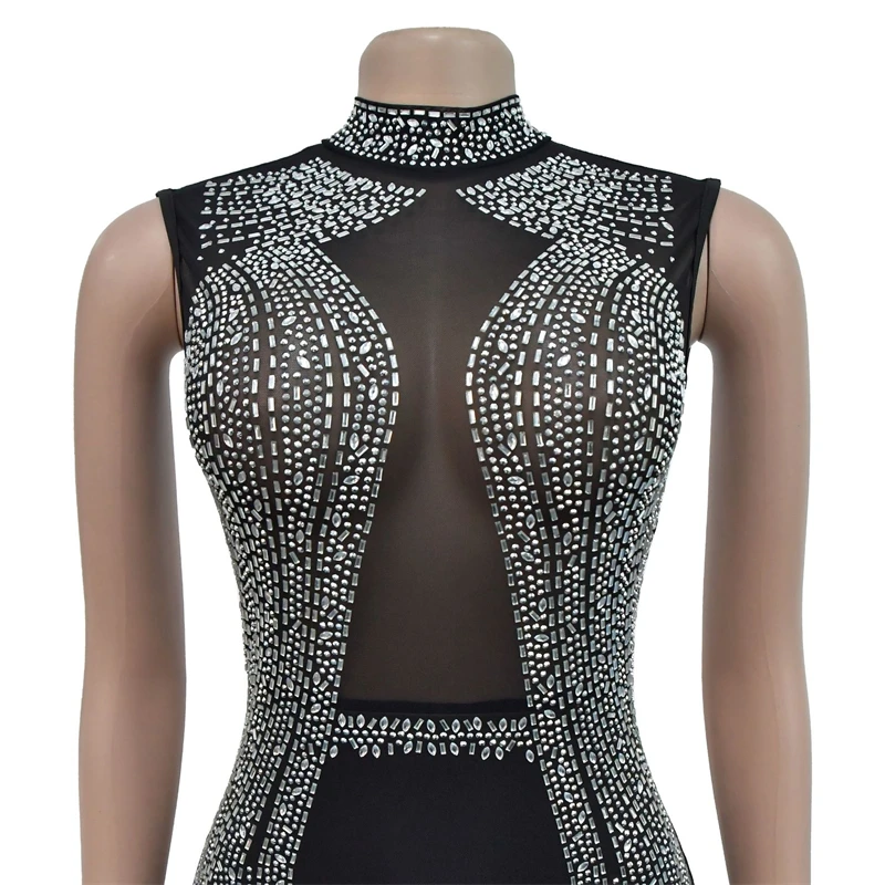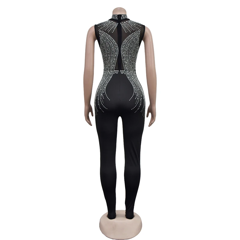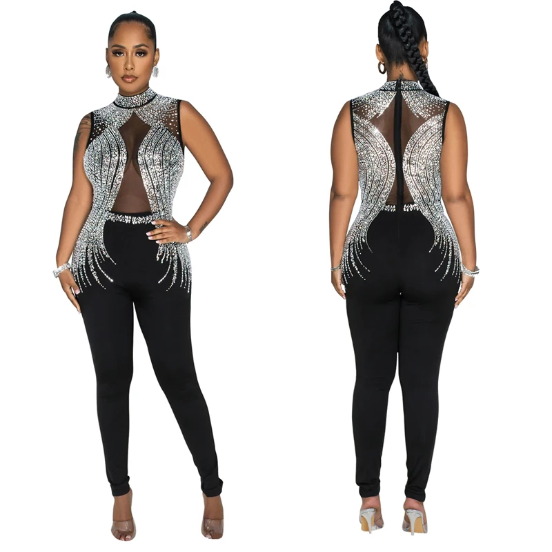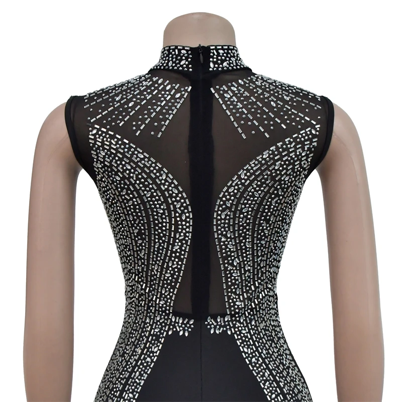 2024 women's elegant sexy chic black rhinestone crystal bead diamond wedding evening pants jumpsuit overall romper for ladies
